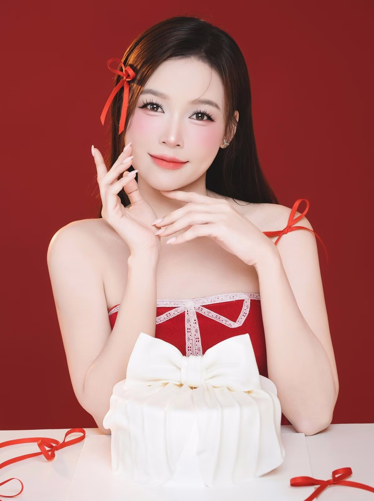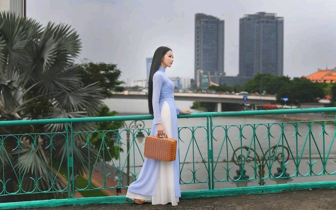 The beautiful Sam once again amazes the public with her sweet and radiant beauty. In her new photoshoot, she appears captivating in a striking red dress, symbolizing luck and joy. Sam's bright smile and sparkling eyes exude a youthful, vibrant charm, making many wonder if they are gazing at a woman in her twenties. Holding a pristine white cake, Sam not only showcases her timeless beauty but also radiates positive energy, affirming the confident and alluring style of a successful woman. This truly is the image of a talented and captivating beauty.VGU No.102 Vietnamese Beauty and National Pride in Ao Dai at Independence Palace