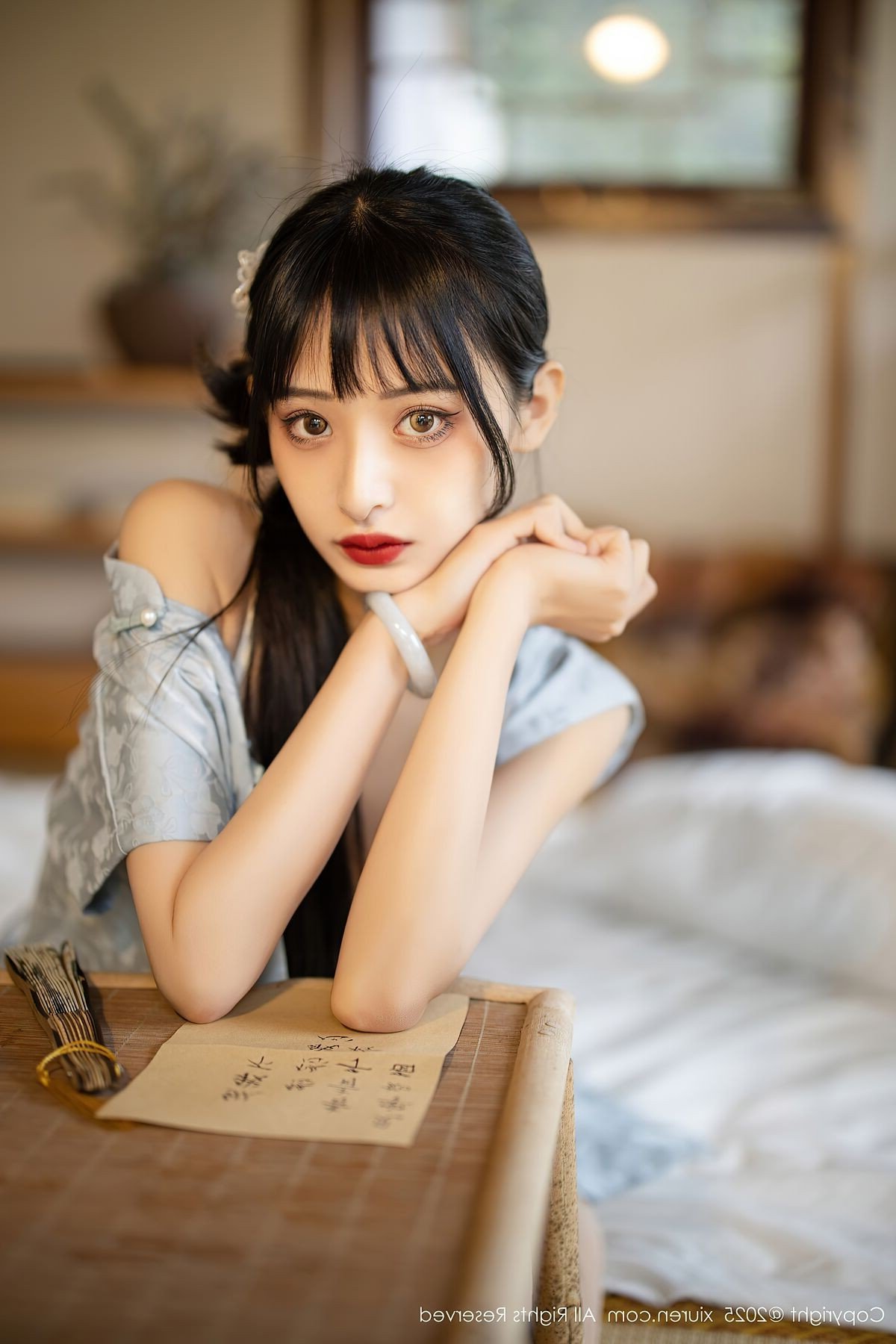In the XiuRen No.10278 photoshoot, Kiko Mogi emanates a graceful and captivating beauty. The model showcases her long dark hair tied neatly, highlighting her delicate face and alluring red lips. She wears a light blue dress, subtly draped to reveal a soft shoulder and a hint of white lingerie, creating an elegantly sensual appeal. The backdrop, a traditional Japanese-style room with shoji screens, enhances Kiko's enchanting East Asian charm. Her gaze directly meets the camera, conveying a deep and inviting emotion. This image beautifully blends modern allure with classic aesthetics, resulting in a mesmerizing photographic artwork.