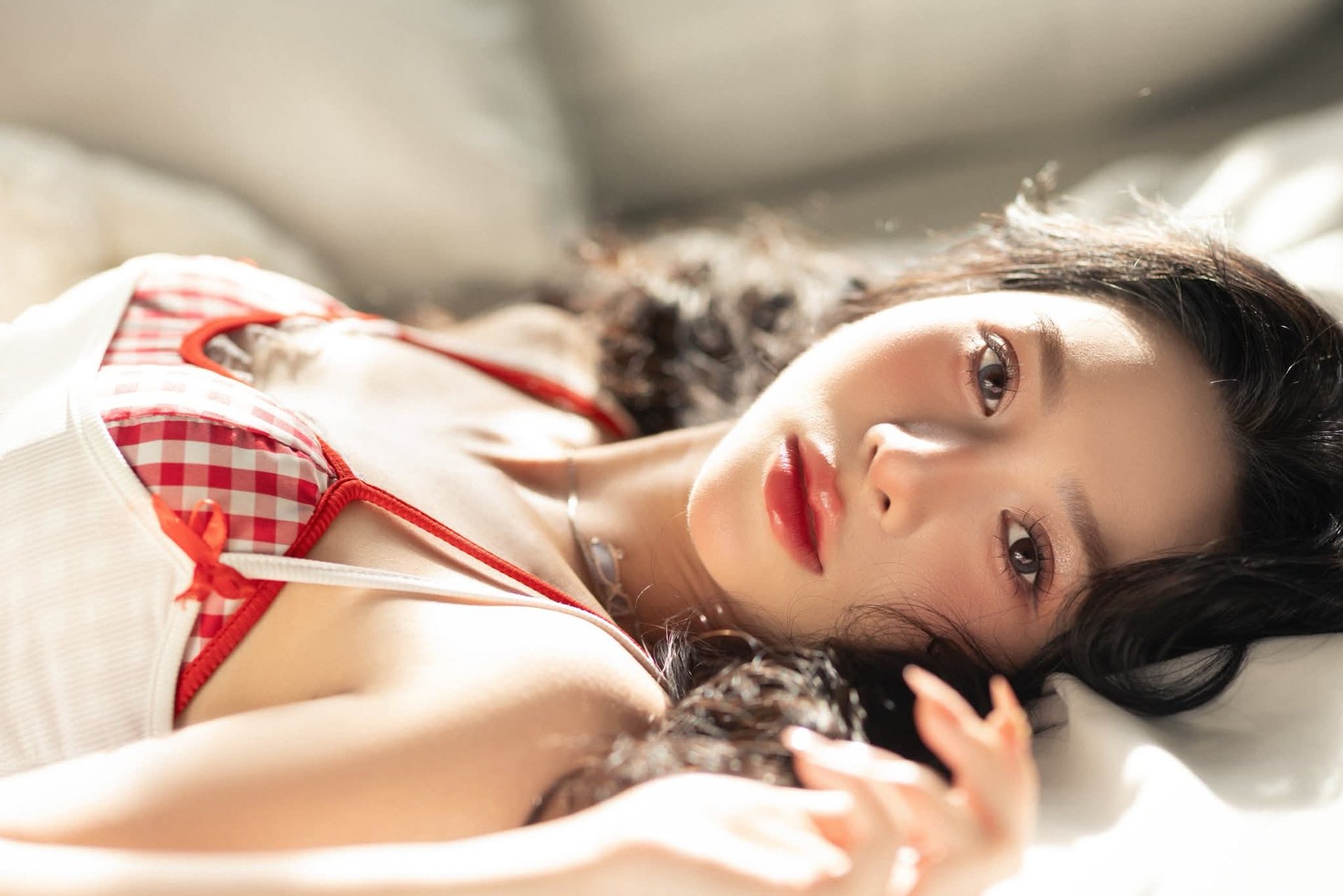 Discover the captivating charm of Pureding Sexy Photobook 9 featuring an alluring Asian model radiating beauty in a warm Christmas setting Dressed in seductive red lingerie she brings an enchanting festive atmosphere Her gentle gaze and bright smile perfectly complement the sparkling Christmas tree and holiday decorations This image not only showcases subtle sensuality but also conveys the joyous spirit of the season It is a perfect blend of East Asian beauty and Christmas cheer creating a memorable and emotional moment Pureding Photobook 9 promises an impressive visual experience for viewers seeking festive allure and elegant styleStories