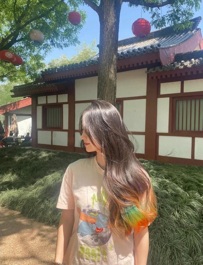 This image captures a beautiful young woman showcasing a striking dip dye hair style. Her sleek black hair is dramatically contrasted by vibrant red ends, perfectly embodying the popular dip dye trend. This unique hairstyle not only enhances her facial features but also strongly expresses her bold personality and self-confidence. The prominent red color adds a fresh, modern touch, helping the girl shine in her own distinctive way. It serves as wonderful inspiration for anyone looking to refresh their look and assert their unique fashion statement. Choosing such a daring hair color creates an impressive and captivating style declaration.