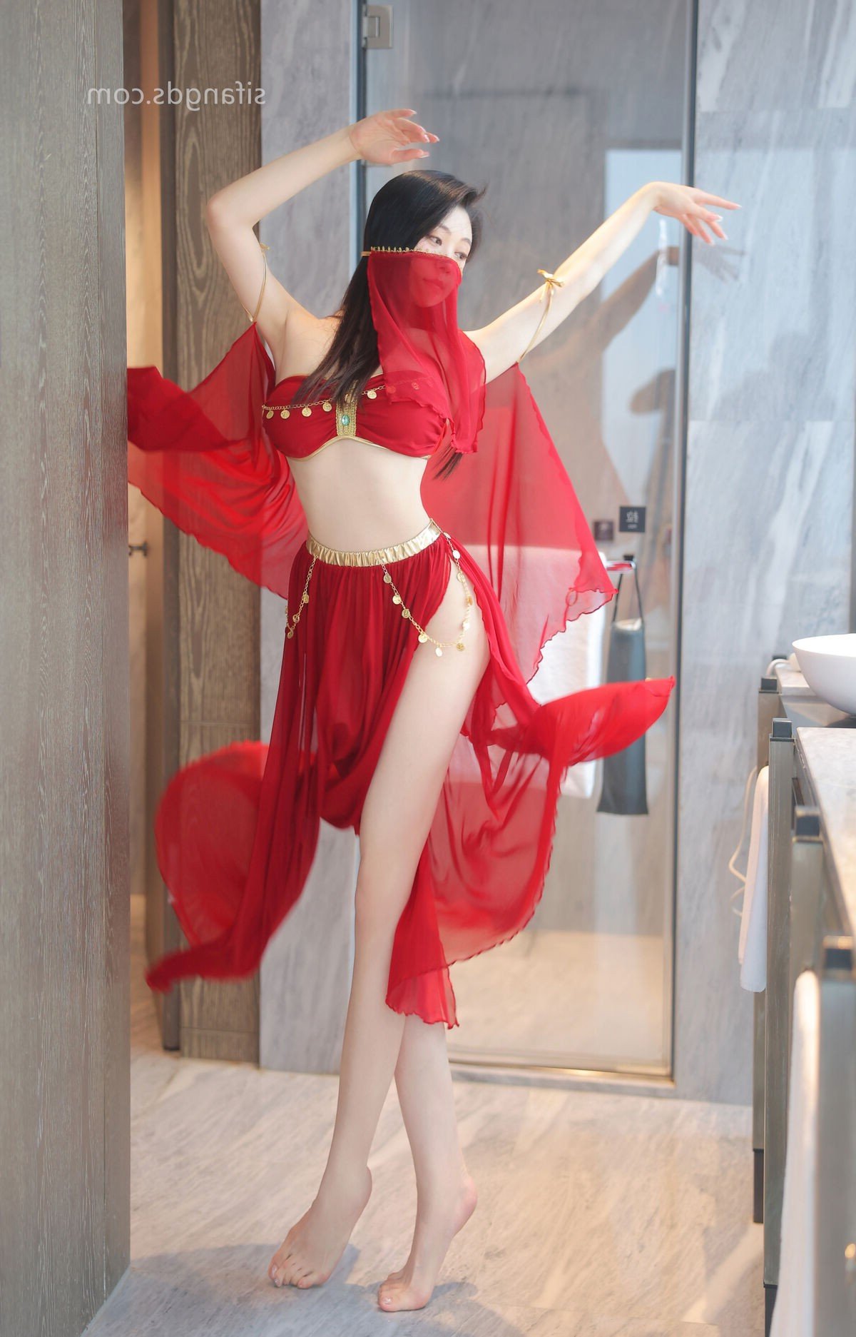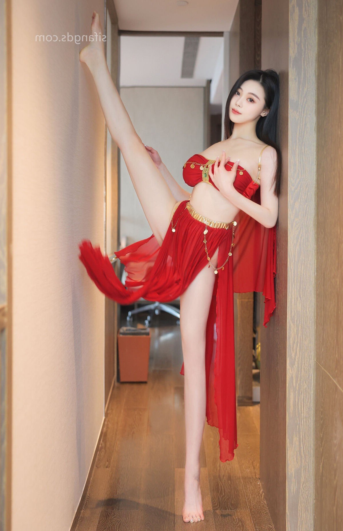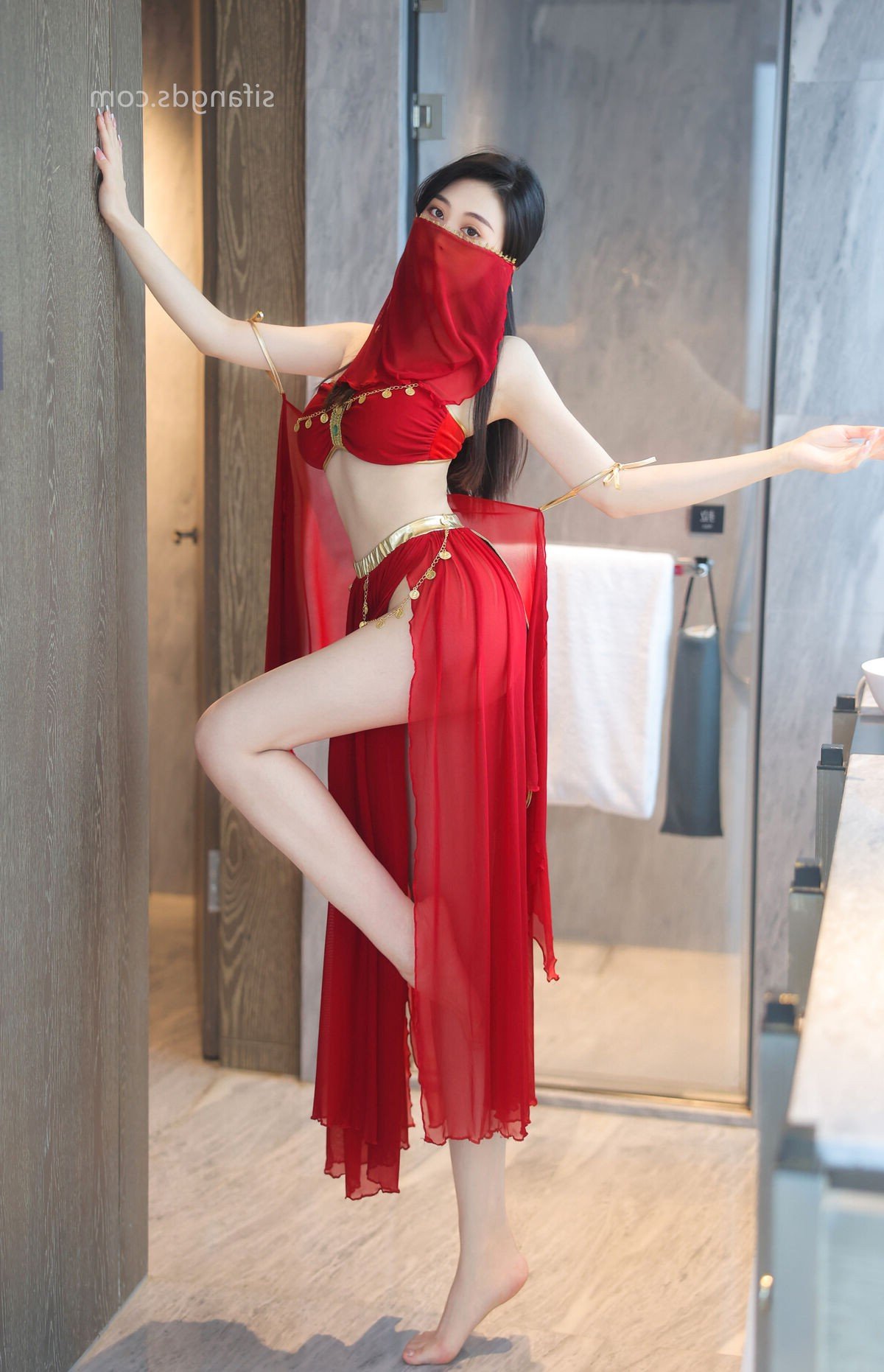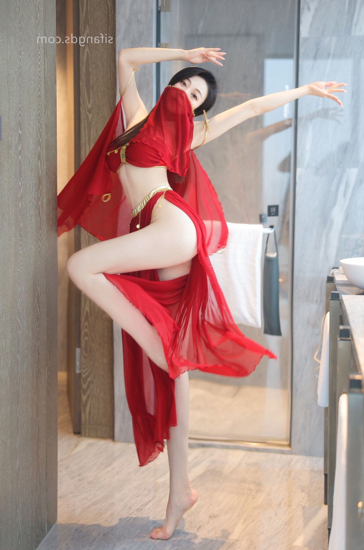 This stunning photograph celebrates the captivating beauty of model Qing Miao 清妙, a prominent figure from XiuRen. She graces the frame in an alluring red dress, its delicate design accentuating her slender physique and graceful curves. The sheer fabric and vibrant hue create a striking contrast, drawing every eye. Qing Miao 清妙 exudes confident and charming allure in every movement, presenting a mesmerizing and sophisticated style. This image is part of the special S Part01 collection, highlighting the professionalism and irresistible charm of XiuRen models. It perfectly blends photographic artistry with the timeless appeal of Asian beauty.Stories