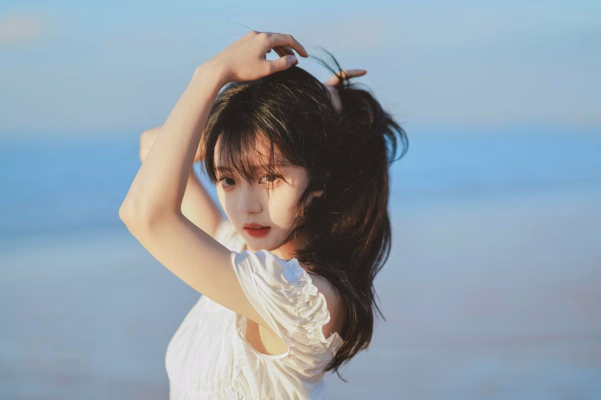 This stunning image captures model Enndme radiating gentle grace and elegance by the seaside. She is adorned in a pristine white dress, her long hair flowing naturally in the soft breeze. The tender light of either dusk or dawn bathes the scene, creating an atmosphere of peace and romance. Enndme stands on the soft sand, her gaze distant as if conveying her thoughts to the vast ocean. The white dress gently flutters with the sea breeze, accentuating her slender figure and pure beauty. This is more than just a portrait; it is an artwork where human natural beauty harmonizes with the majestic seascape. The YiTuYu Vol.8279 series promises to touch viewers' hearts with its unique tranquility and captivating charm.#Enndme #WhiteDress #Beach #Seaside #AsianModel #YiTuYu