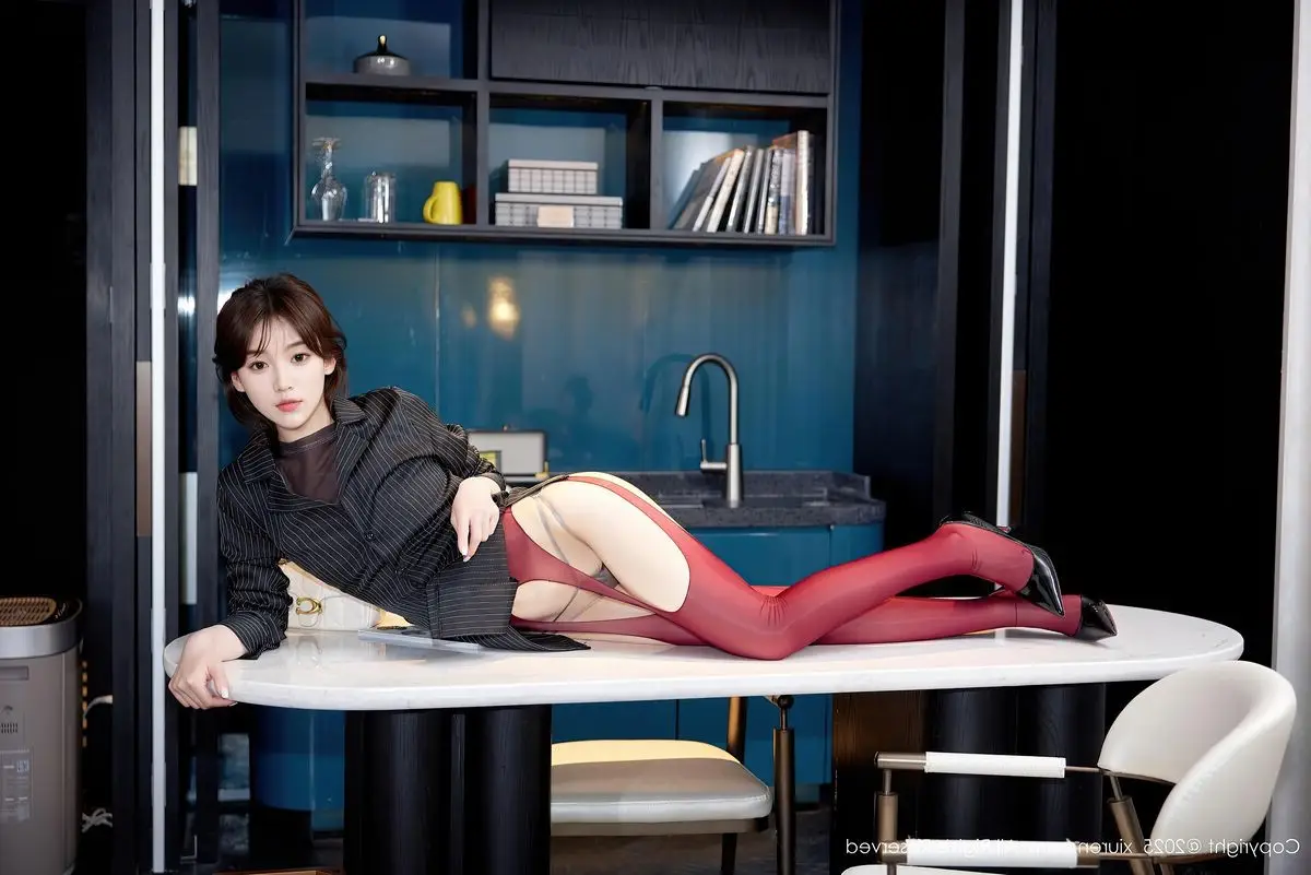 The XiuRen No.10633 collection features model Zhi Zhi presenting an undeniably captivating office style. In this striking image Zhi Zhi dons an elegant black blazer dress perfectly paired with seductive red stockings creating a unique and bold fashion statement. Her confident demeanor and engaging gaze highlight her modern beauty and alluring charm. The sophisticated interior backdrop further enhances the overall refined aesthetic. Zhi Zhi effortlessly conveys both professionalism and an irresistible allure showcasing her distinctive style and undeniable class.#ZhiZhi #XiuRen #OfficeFashion #BlazerDress #RedStockings