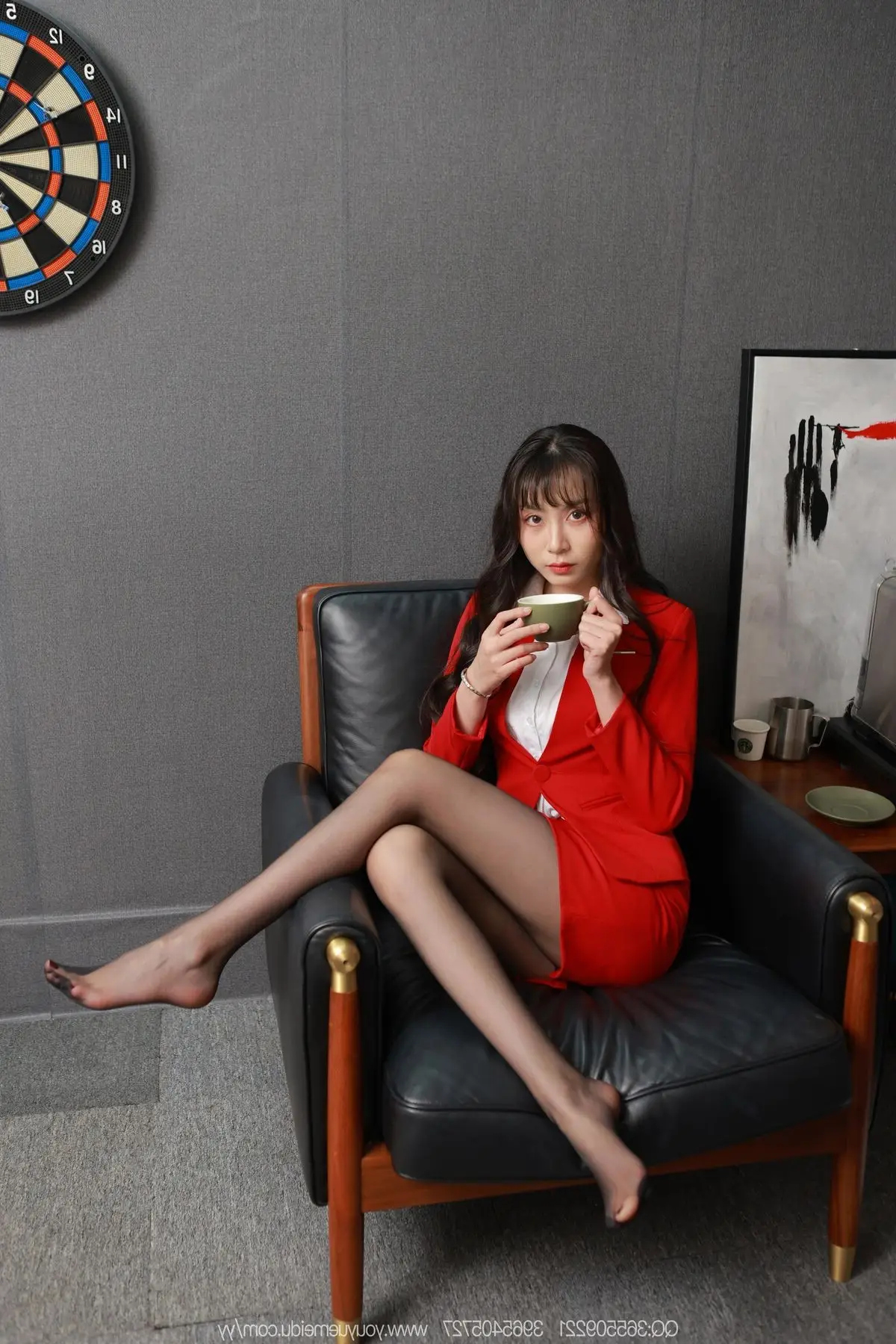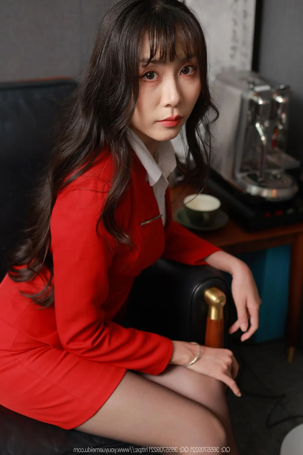 Captivating Secretary Tuan Tuan: Red Suit, Black Sheer Stockings in Office – IESS SXJ No.2097
