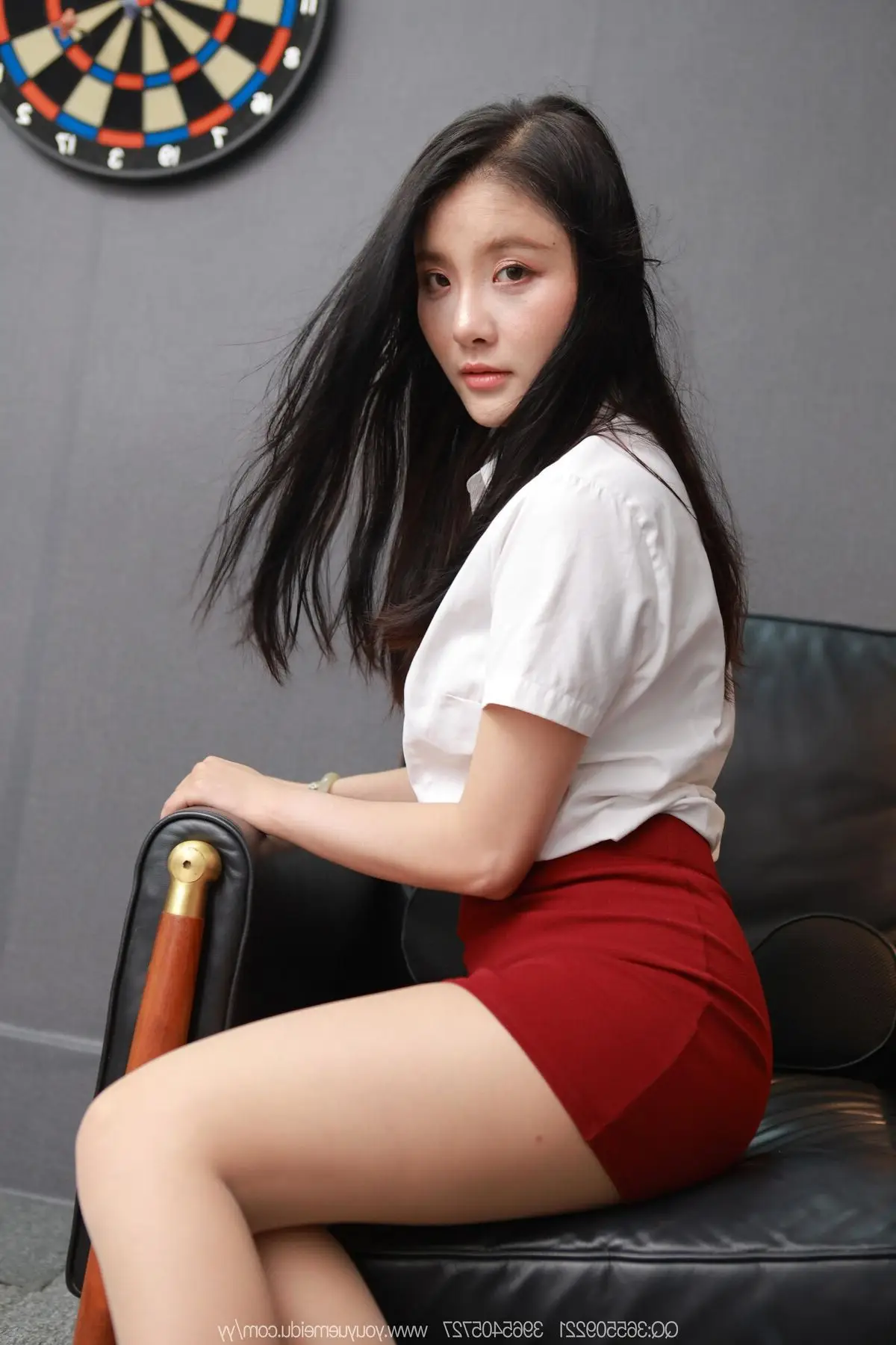 Chinese model Wan Ping, featured in IESS SXJ No.2100 Part 2, exudes an elegant and self-assured beauty. She is gracefully seated on a luxurious leather armchair, dressed in a pristine white shirt paired with a striking red mini skirt, creating a look that is both professional and captivating. Her black high heels accentuate her slender figure, while her mesmerizing gaze conveys professionalism and an undeniable charm. This image beautifully captures not only an impressive fashion moment but also highlights Wan Ping's distinctive charisma, embodying confidence and modern style.#WanPing #IESS #ChineseModel #FashionPortrait #ElegantStyle #OfficeLady #OL #Secretary