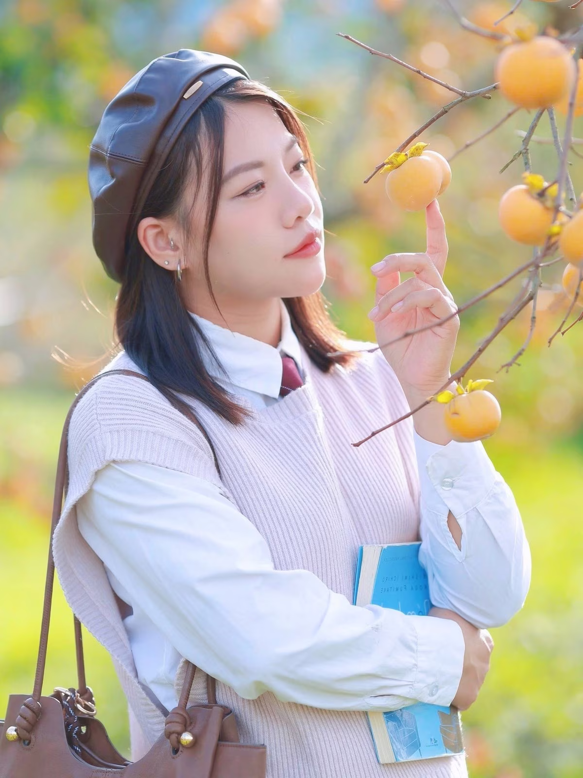 This beautiful photograph captures a poetic moment of a Vietnamese girl She embodies a charming vintage style with a warm brown beret and neck scarf Her dreamy eyes gaze upwards holding deep thoughts or a beautiful dream of youth She gently cradles a delicate bouquet of pink roses creating a harmonious blend of classic beauty and fresh appeal The earthy orange wall in the background further highlights her elegant charm and romantic emotions This is more than just a portrait it is a narrative of nostalgic beauty and subtle sentiments inviting viewers to ponder the quiet stories within #Vietnamese #pretty #charm