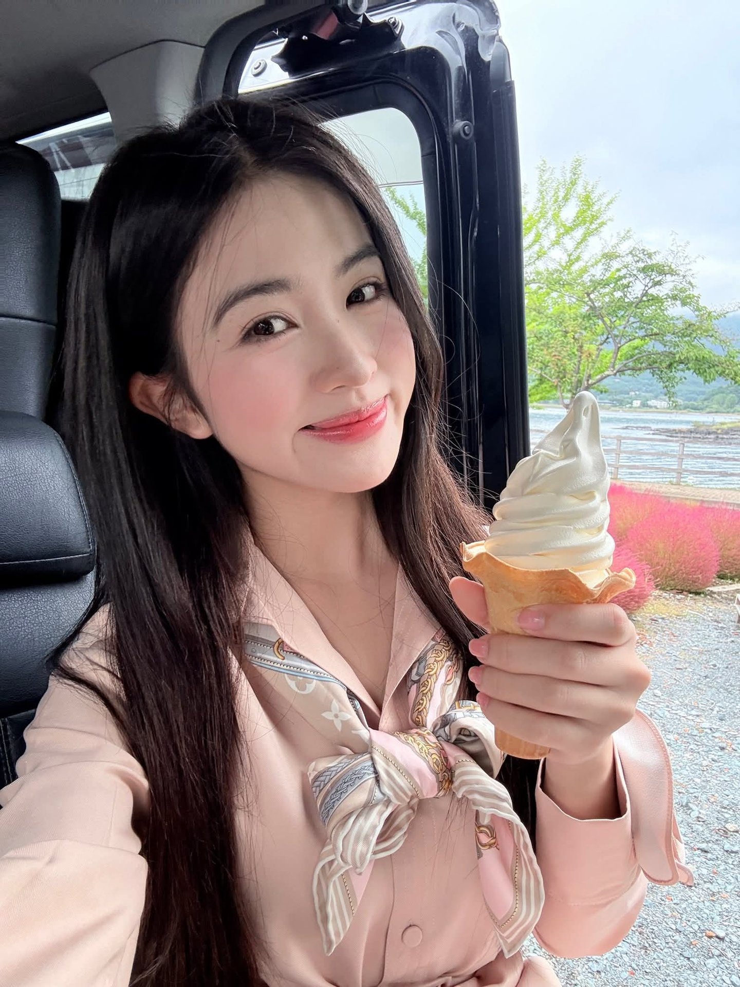 This VGU No42 image captures a beautiful moment of a vibrant and elegant Vietnamese girl Dressed in a simple yet stylish red top and white shorts she confidently strolls along the sparkling lakeside A colorful array of yellow orange and red flowers lines the pathway creating a picturesque and energetic backdrop The gentle beauty of the person harmonizes with the fresh natural scenery evoking a sense of peace and relaxation This is more than just a fashion photo it is a symbol of the natural beauty and modern lifestyle of young Vietnamese people in an urban setting The image offers an intimate glimpse into daily life and the charming landscapes of Vietnam #Vietnamese #pretty #charm