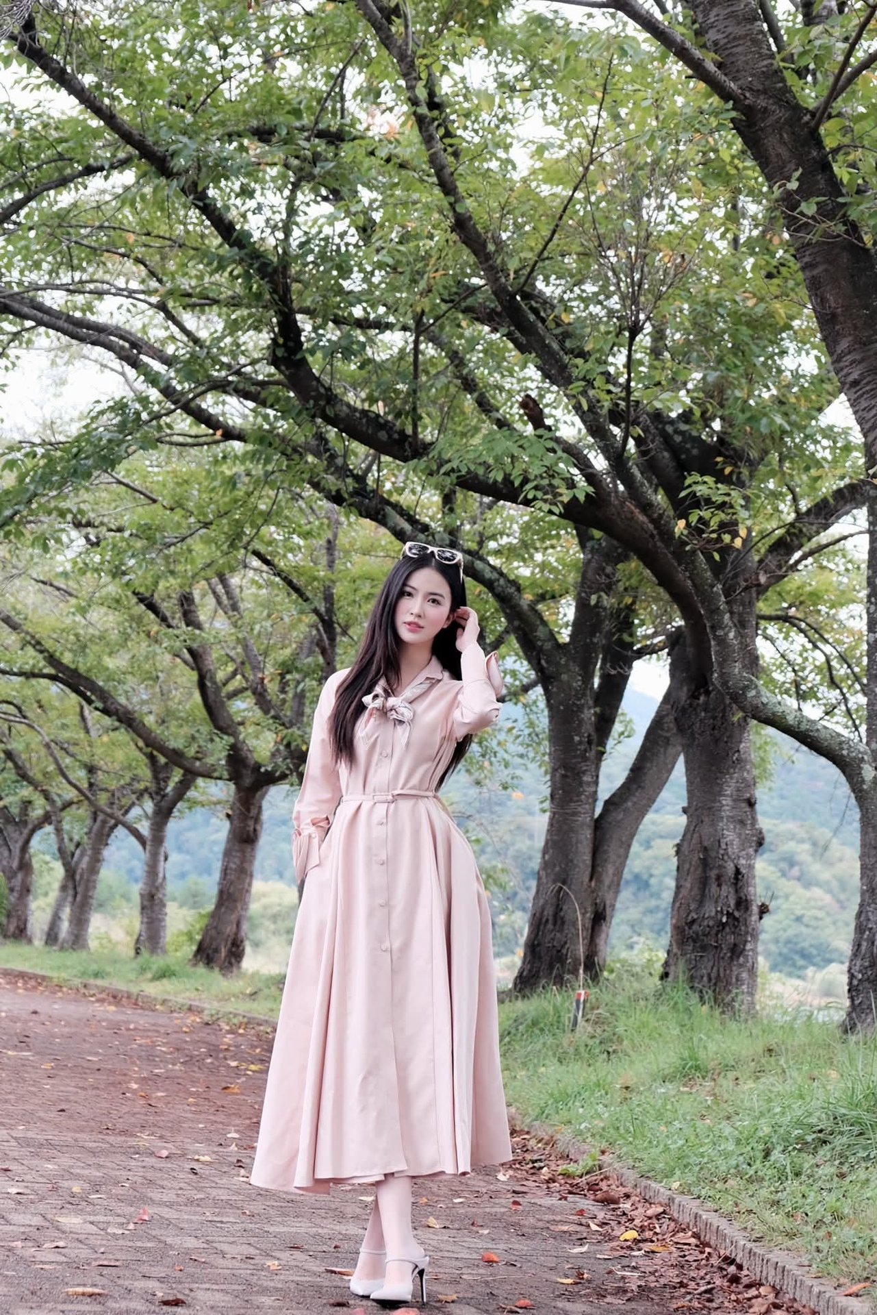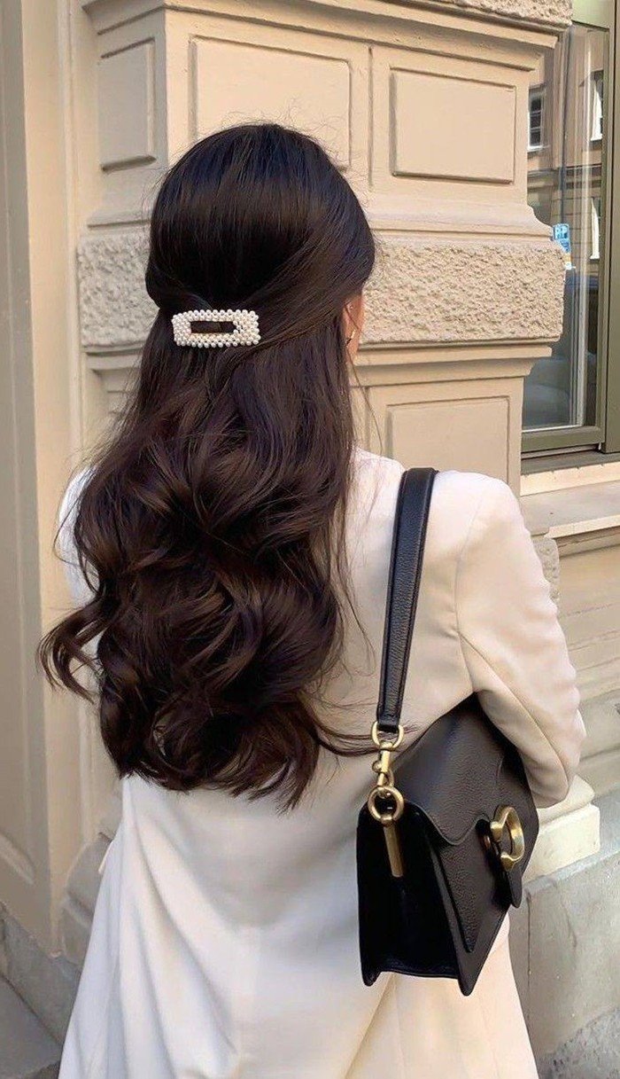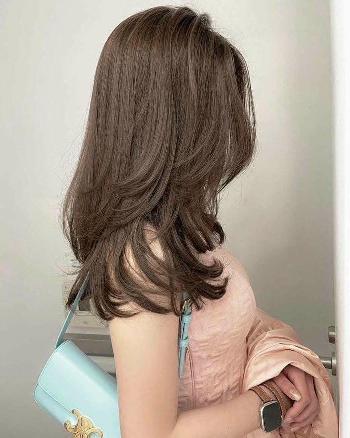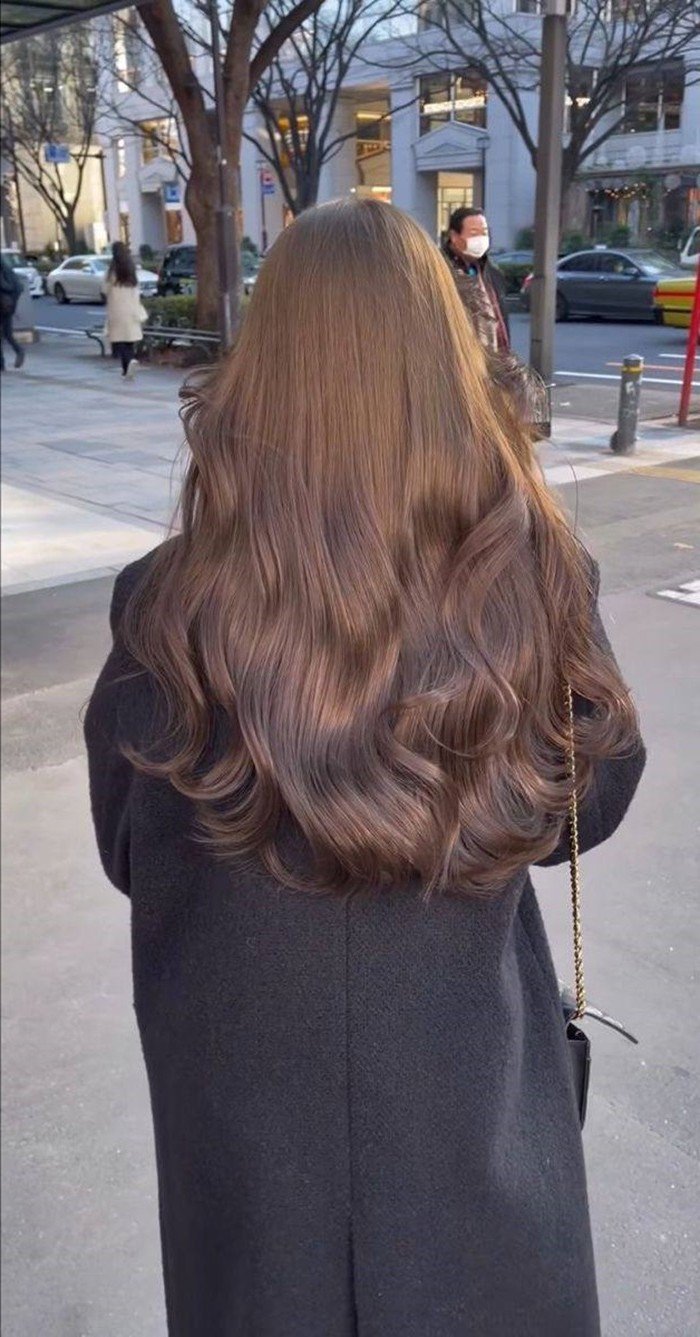 This photo perfectly showcases the natural and captivating beauty of brown hair With its warm deep brown shade subtly infused with a gentle Korean orange tint the girl's long smooth hair not only highlights her fair skin but also brings an elegant and gentle appearance This is an ideal choice for anyone wanting to change their look while maintaining a refined touch This hairstyle easily pairs with various fashion styles from dynamic casual to elegant office wear helping you always feel confident and radiant This skin-tone enhancing brown hair will surely be a popular trend among girls this year bringing a beautiful Korean girl look
