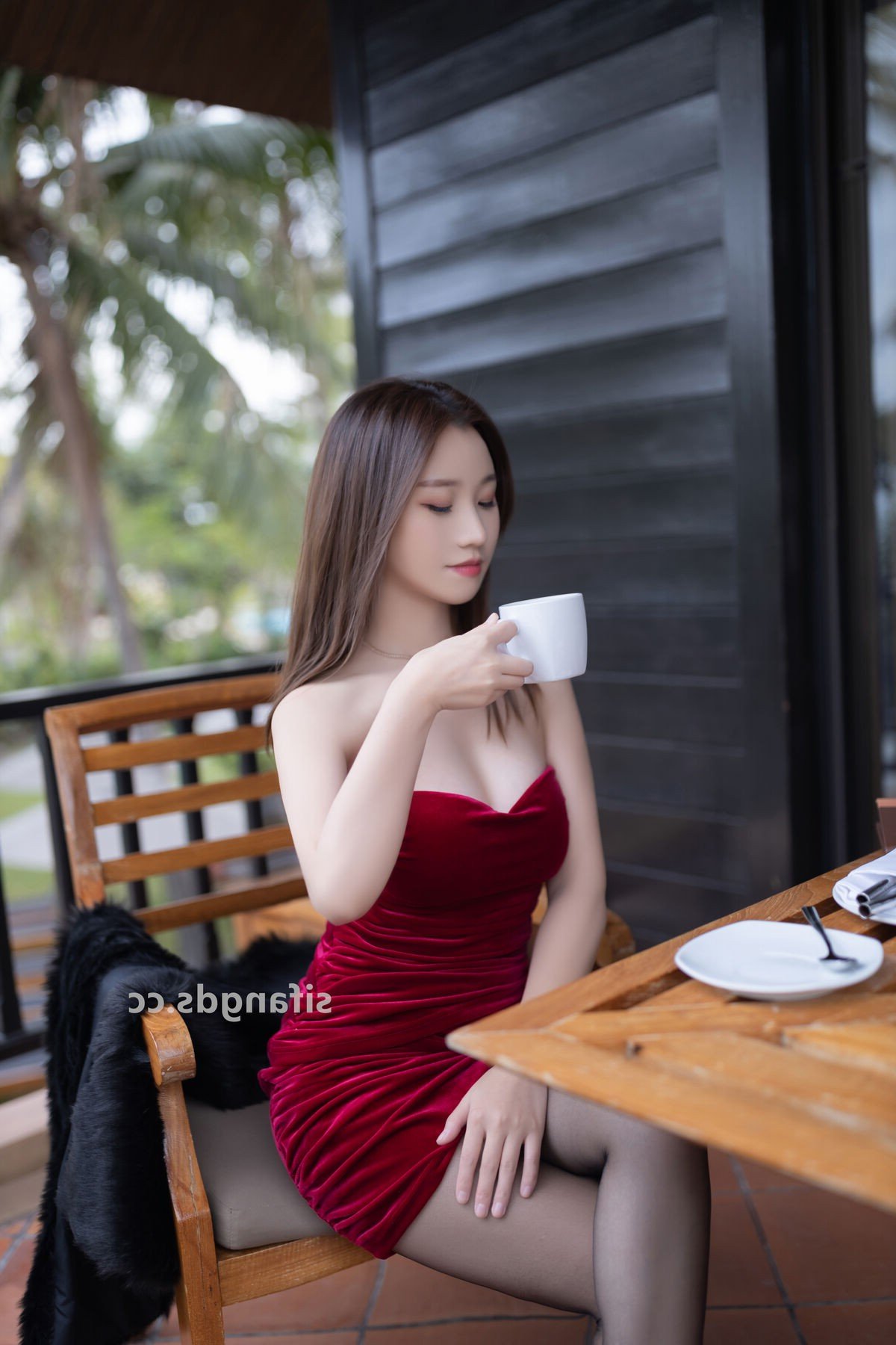This stunning image showcases XiuRen model Kyoko Yada 杏子Yada in a captivating moment She gracefully sits at an outdoor wooden table adorned in a striking strapless red dress that highlights her elegant and alluring charm Kyoko Yada's gaze directly meets the camera conveying confidence and magnetism The natural outdoor lighting beautifully illuminates her smooth skin and lustrous hair A cup of coffee and some fruits on the table create a relaxed and inviting backdrop The delicate Asian beauty of Kyoko Yada is evident in every detail from her refined facial features to her captivating aura This is an impressive photograph celebrating the style and grace of the XiuRen model evoking a sense of peaceful and vibrant morning The image is not merely a snapshot but an artistic expression of beauty
