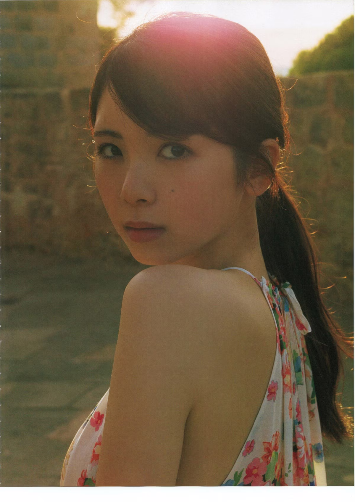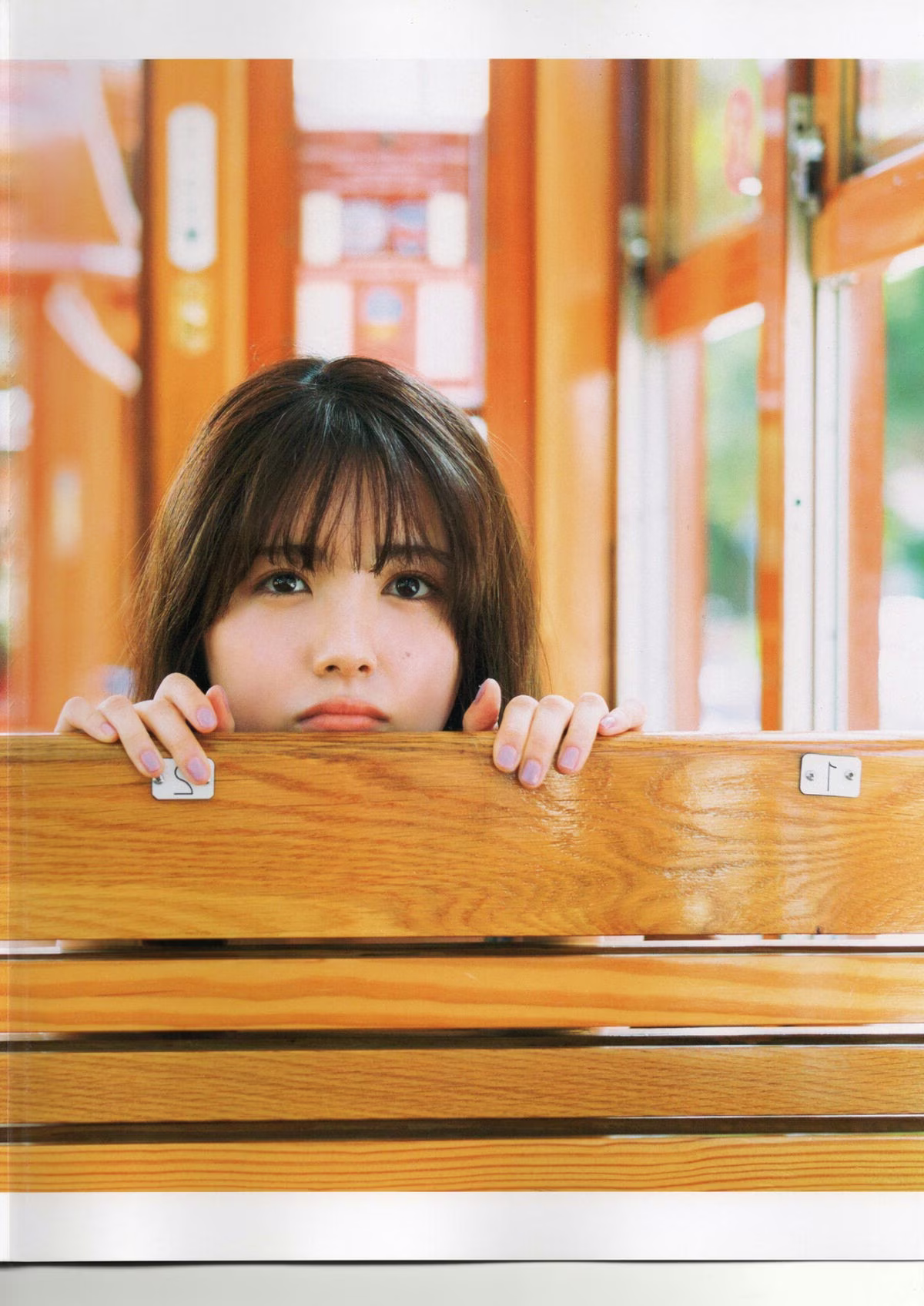 Discover the captivating charm of Nanako Mochizuki (望月菜七子) as she embodies the alluring Femme Fatale. In this stunning gravure image she gracefully poses on wooden stairs her mesmerizing gaze fixed directly upon the viewer exuding an irresistible appeal. Her light patterned attire subtly hints at her confident and elegant demeanor creating an image that is both sophisticated and alluring. Every moment captured reveals the mysterious aura and unique magnetism of a woman of destiny. This exclusive gravure photobook promises to leave a lasting impression showcasing Nanako Mochizuki's inherent grace and natural beauty ensuring viewers are utterly captivated.