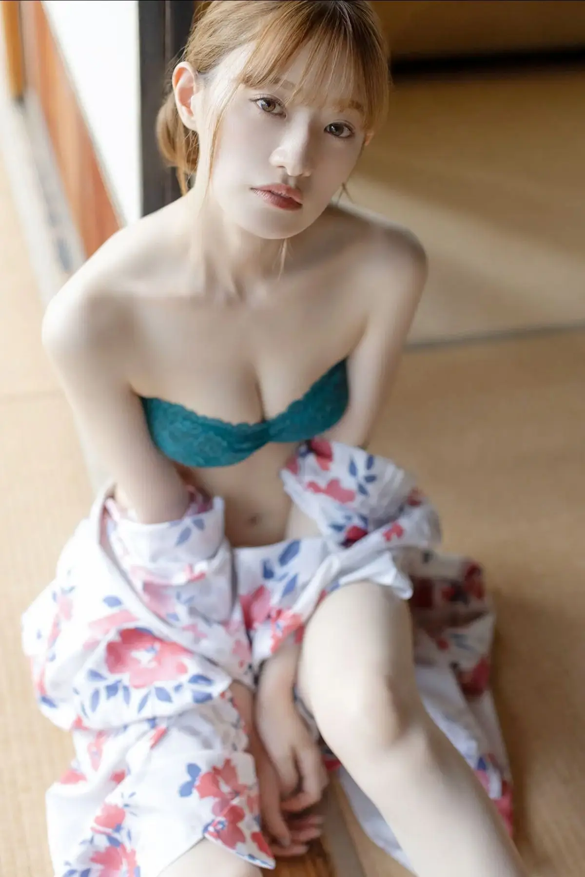 In the FRIDAY GOLD 艷やかに咲く photoshoot, Kana Nakada embodies an elegant and graceful beauty, truly living up to the collection's title, meaning 'blooming gorgeously'. She is captured wearing a traditional Japanese yukata with vibrant floral patterns, seated on the veranda of an ancient wooden house. Her gentle gaze and subtle smile exude a sense of serenity, blending seamlessly with the lush green natural surroundings. This image not only celebrates Kana Nakada's allure but also delicately portrays Japanese culture and architecture. Each moment is a harmonious blend of human beauty and scenic charm, creating a captivating and emotional whole, inviting viewers to fully appreciate the '艷やかに咲く' splendor.#KanaNakada #FRIDAYGOLD #YukataFashion #JapaneseBeauty #AdeyakaniSaku