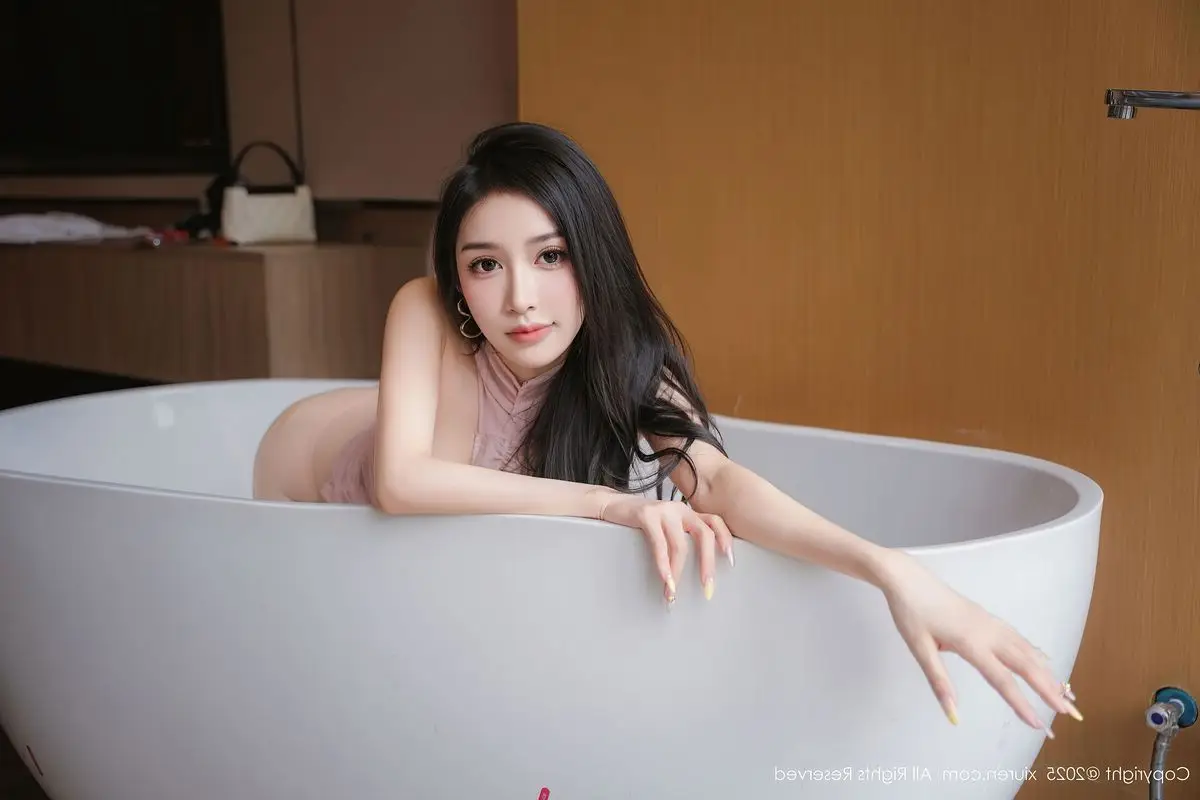 Immerse yourself in the alluring world of Xiao A Jiao Gill through the exclusive XiuRen No.10689 photo collection. In this image the model radiates elegant and sensual beauty dressed in a delicate sheer light pink dress that accentuates her graceful figure. Her charming pose on a pristine white bathtub creates an artistic and luxurious setting. Xiao A Jiao Gill's gentle smile and captivating gaze are sure to mesmerize every viewer offering a refined and unforgettable visual experience. This photoshoot perfectly blends East Asian aesthetics with modern style highlighting her unique appeal.#XiaoAJiaoGill #XiuRen #Model #AsianBeauty #SensualFashion #ArtisticPhotography