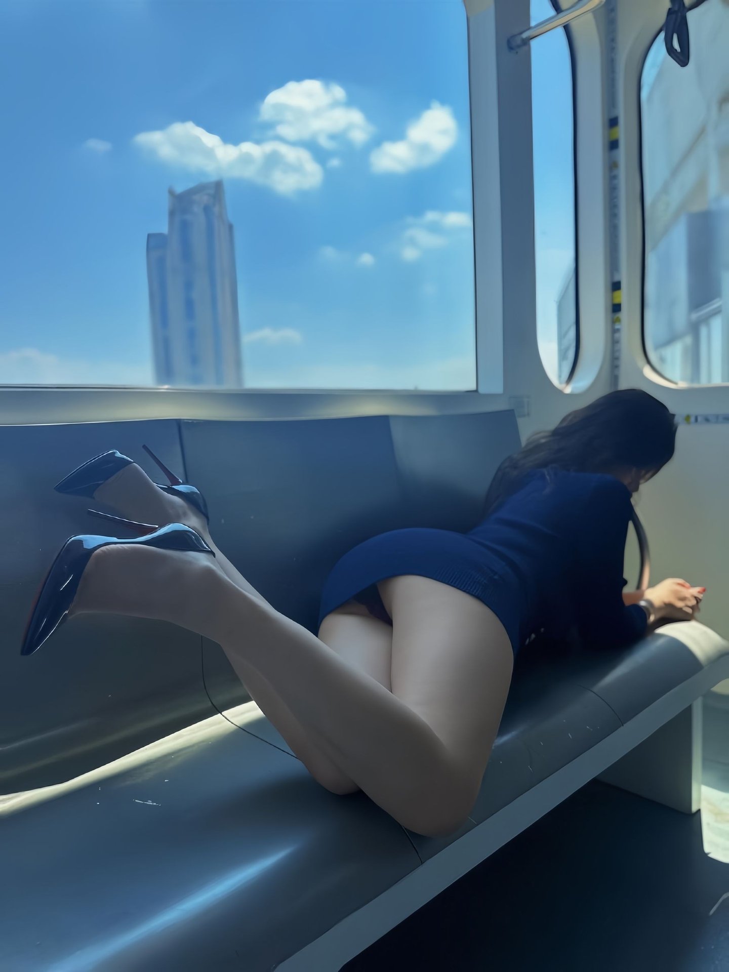 This stunning photograph captures Kekexi yyy, a beautiful woman, radiating captivating and modern style. She dons an elegant yet daring navy blue dress, skillfully showcasing her alluring figure. With flowing hair and a confident gaze, Kekexi yyy embodies self-possession and mature beauty. The subway setting adds an urban touch, highlighting her dynamic personality and distinctive charm. This image perfectly blends sophisticated elegance with confident allure, creating a memorable moment that draws all eyes. It's a true representation of contemporary fashion and urban grace, making it a must-see for enthusiasts of stylish portraiture.Stories