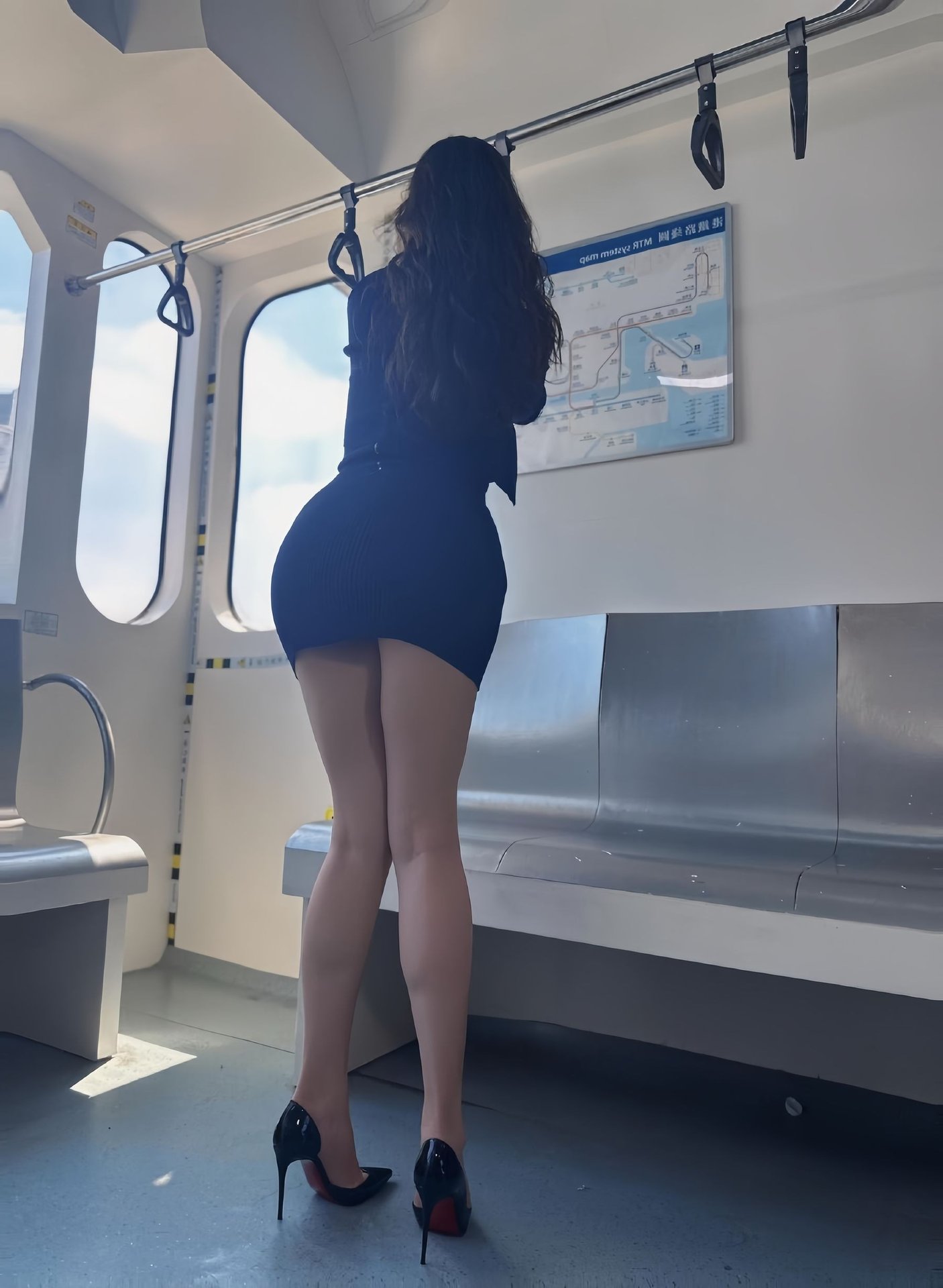 Kekexi: Beautiful woman, alluring style on subway. Modern fashion, captivating look.
