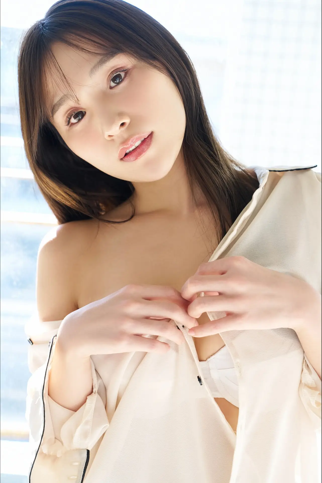 This captivating portrait showcases the pure and gentle beauty of Ayaka Hidarihata from the Left Vol.1 collection. With her innocent gaze and a hint of a soft smile she emanates a natural sweetness. Her long flowing hair and delicate attire accentuate her inherent grace. Ayaka Hidarihata is not just an actress but also an emblem of pristine elegance. This image invites viewers to admire a quiet emotional moment revealing an effortlessly charming demeanor. It is a genuine artistic representation of her inner and outer beauty capturing her serene and alluring presence.#AyakaHidarihata #JapaneseActress #PureBeauty #NaturalCharm