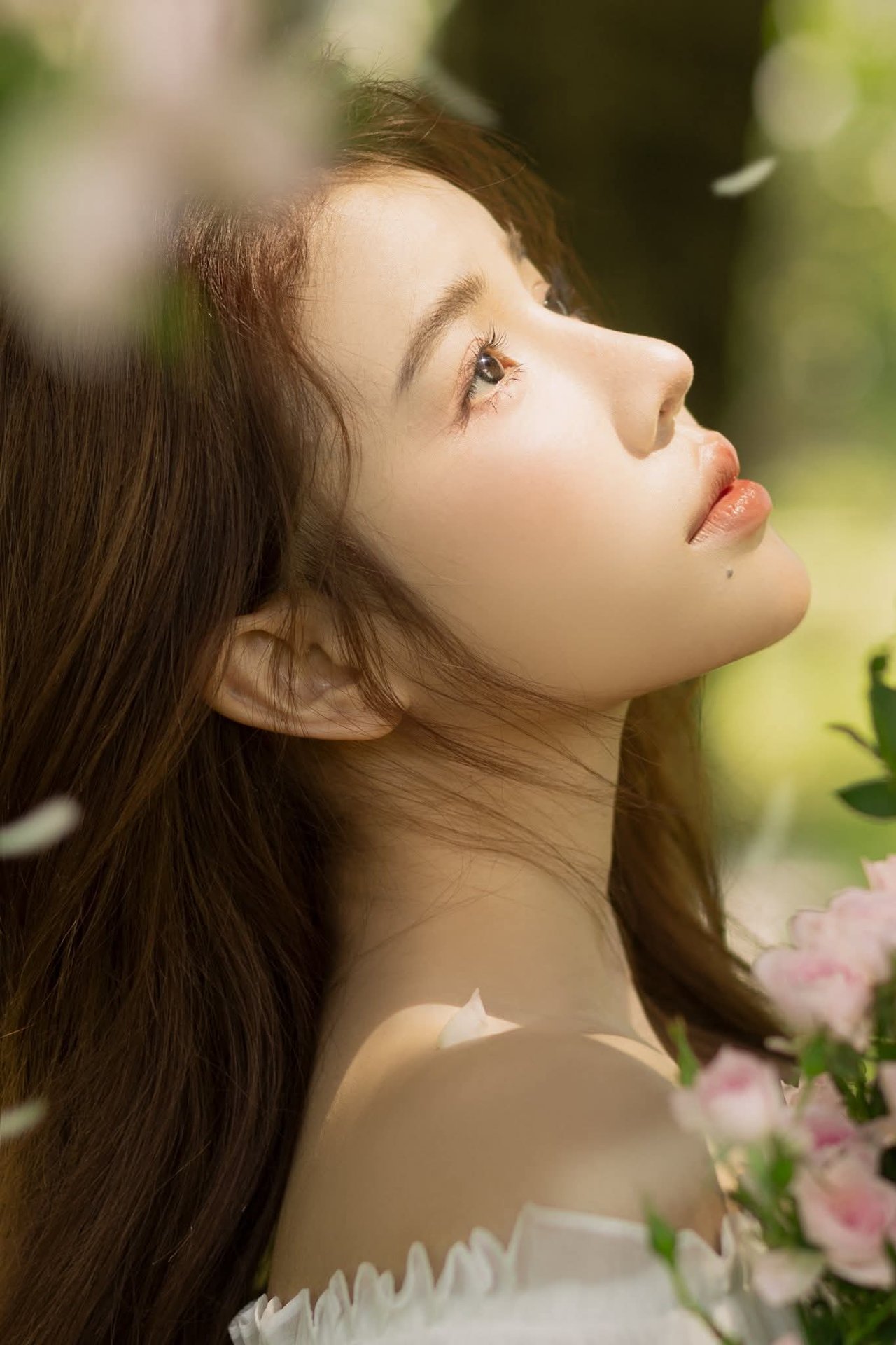 In this captivating image Yokono Sumire radiates a pure and gentle beauty. The renowned Japanese girl delicately holds fragile roses creating a moment filled with emotion. Her thoughtful gaze and elegant profile evoke curiosity about the FLASH Digital Photo Book どこ見てるの. This exquisite portrait beautifully captures her natural grace. More than just a segment of the popular Japanese Girls collection this photograph stands as a testament to Yokono Sumire's unique charm. The harmonious blend of human allure and natural beauty results in a compelling piece of art that truly captivates the viewer. Fans will undoubtedly be enchanted by this stunning visual.