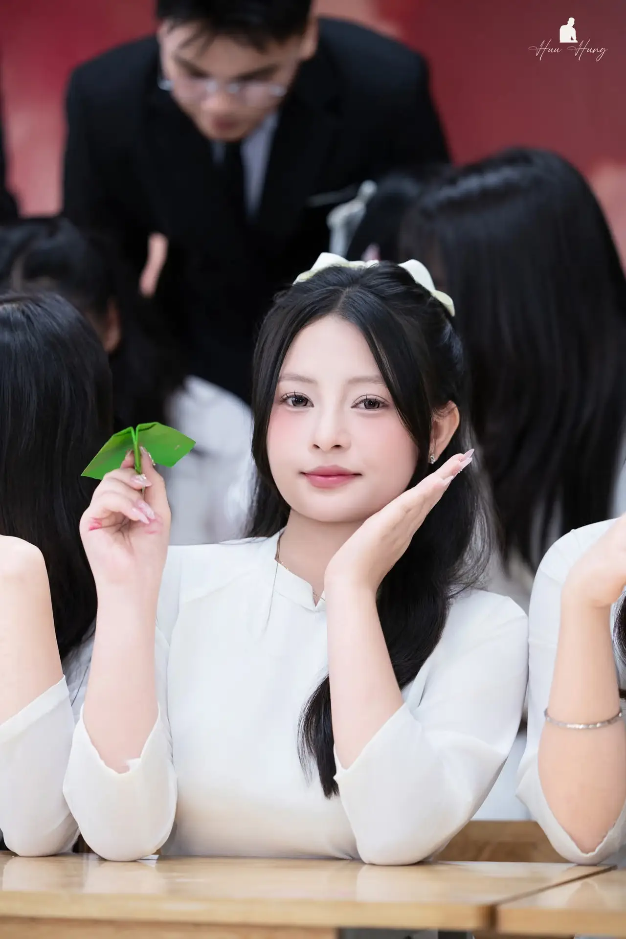 This photo captures a graceful moment of a female student in the traditional white ao dai. Her pure and gentle beauty is enhanced by the pristine attire a symbol of Vietnamese culture. Soft light illuminates her delicate features and long dark hair creating an image that is both modern and deeply classic. The girl stands in a peaceful setting perhaps a school corridor evoking memories of innocent school days and dreams. The ao dai is not just clothing but also a source of pride a symbol of elegance and grace for Vietnamese women. Looking at the picture viewers can feel the tranquility the fresh beauty and the unique elegance of Vietnamese female students. This is a beautiful moment honoring traditional beauty and youth.#AoDai #Vietnamese #Student #Culture #Beauty