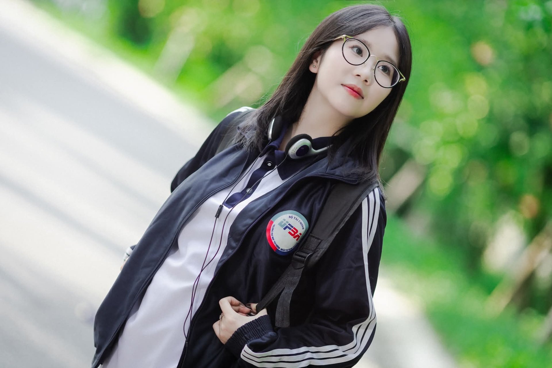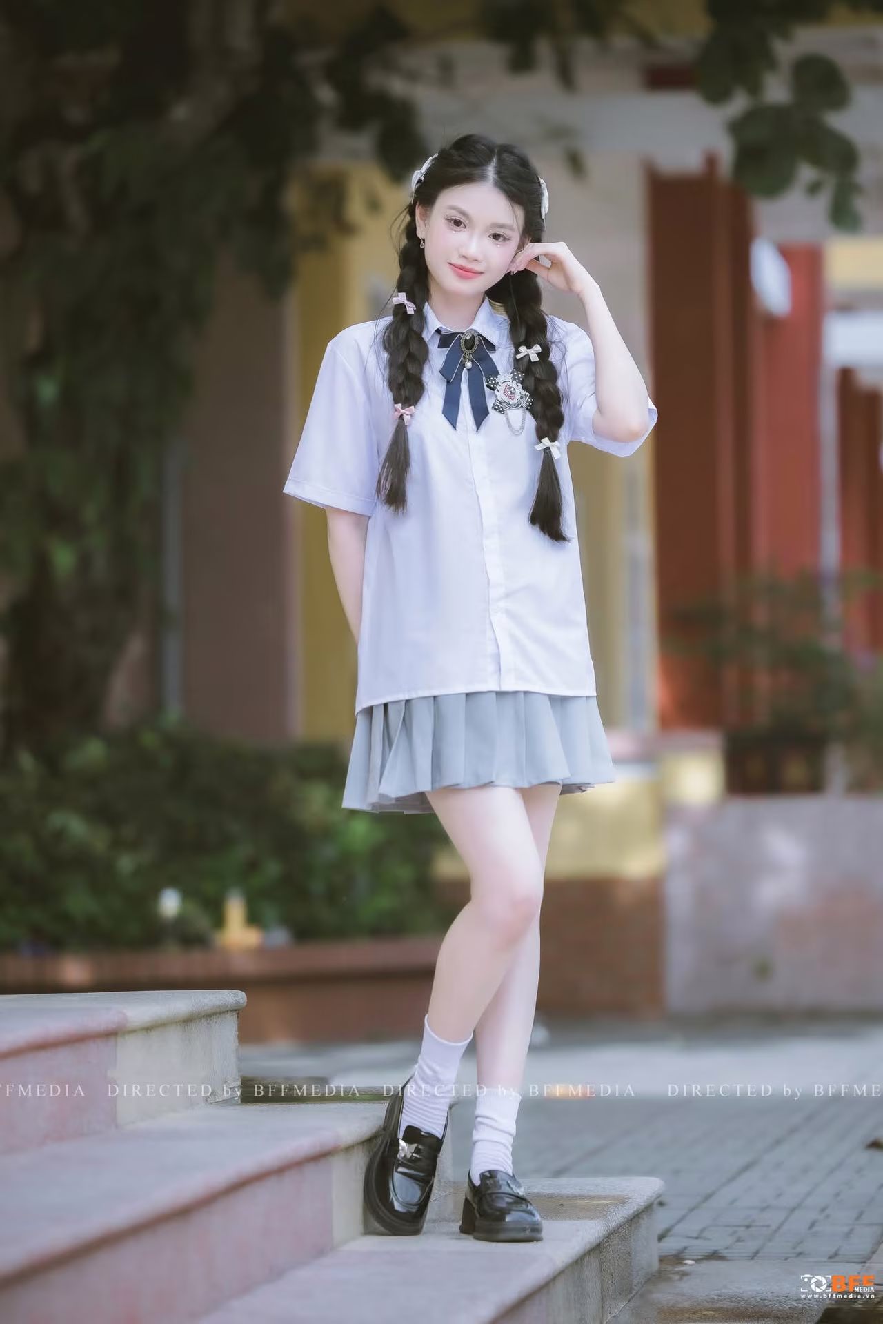 VGU No.142: Captivating Female Student in Uniform Captures Youthful Serenity