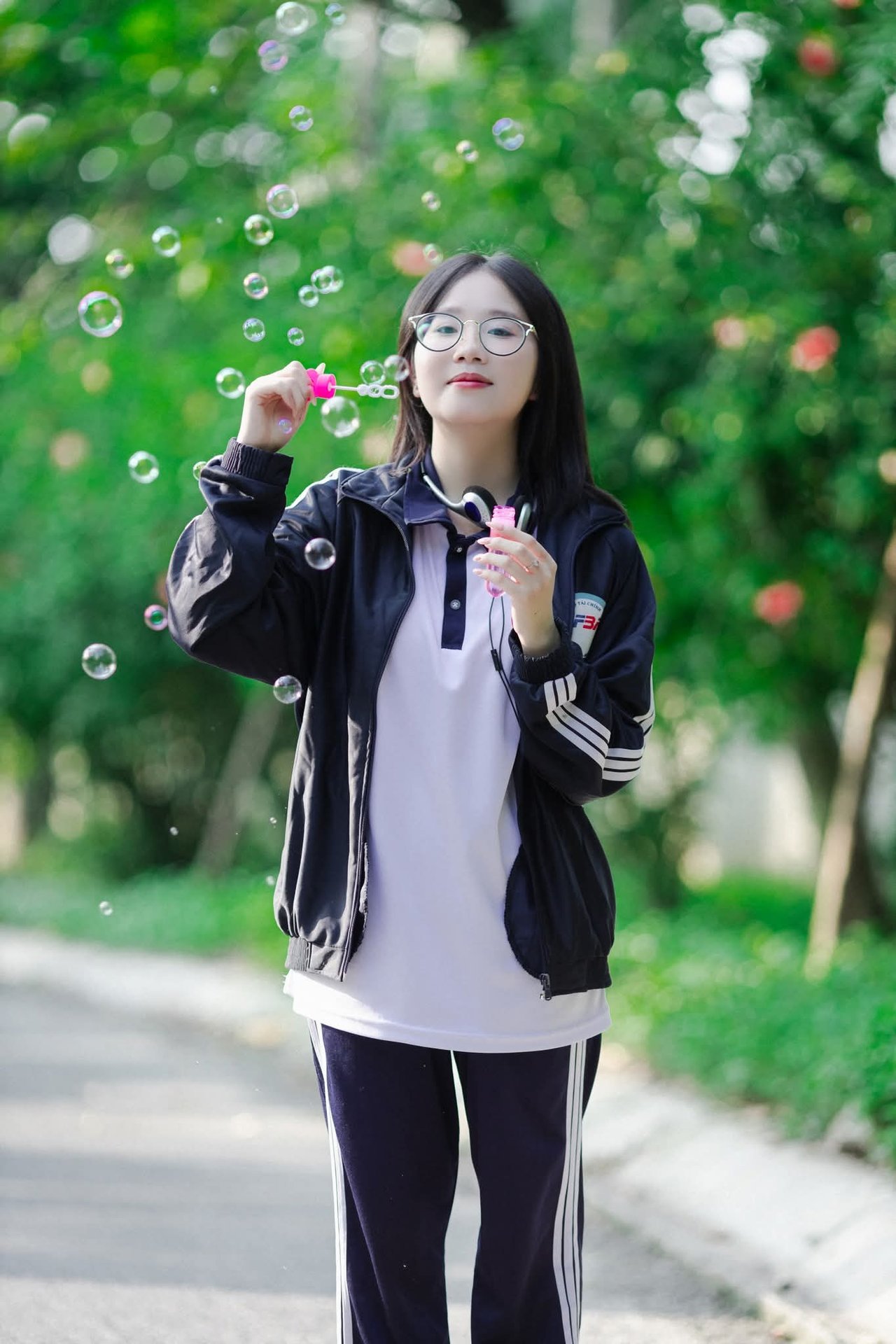 VGU No.17 captures a fresh moment of a youthful student on the VGU campus. The girl exudes a dynamic and confident charm with her modern school style. Her black sailor-collar top paired with a pleated skirt and a fashionable backpack creates a harmonious and striking ensemble. The distinctive platform shoes and white socks further enhance the unique flair of her outfit. Her gentle smile and radiant eyes reflect the vibrant spirit of youth. This image is not just a beautiful portrait but also symbolizes the youthful energy and dynamism of VGU students. #Vietnamese #pretty #charmVGU No.12: Enchanting Ethereal Beauty Long-Haired Girl Amidst Shimmering Goldfish