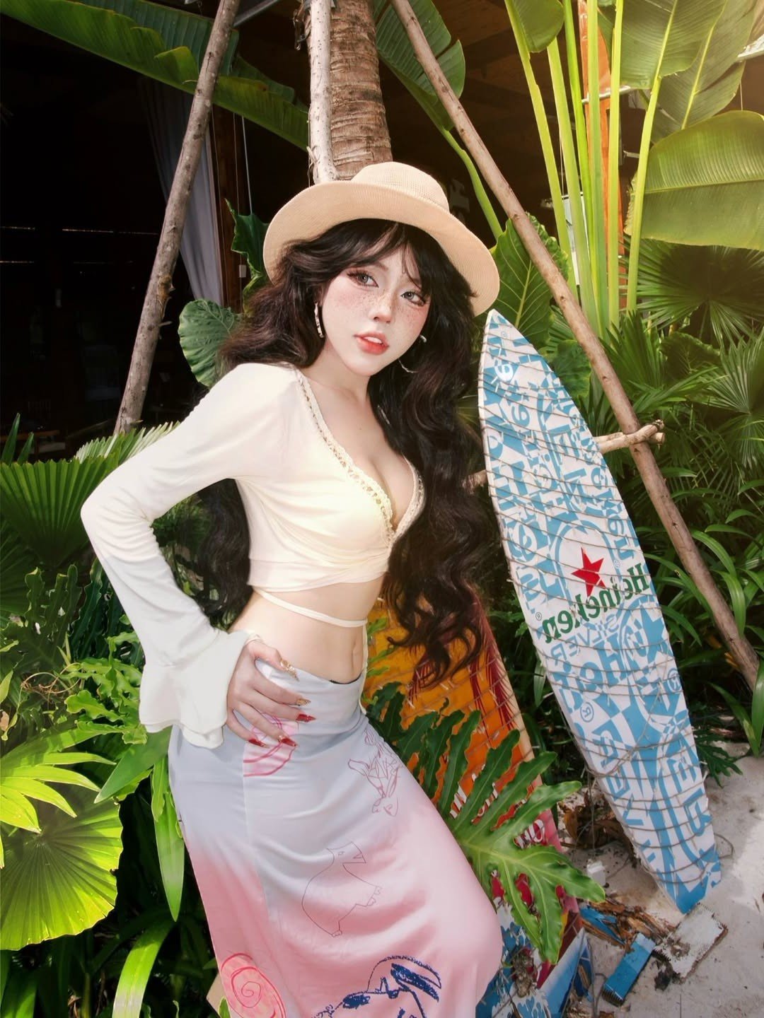 View Hot girl Linh Truong alluring in one-piece bikini beach fashion