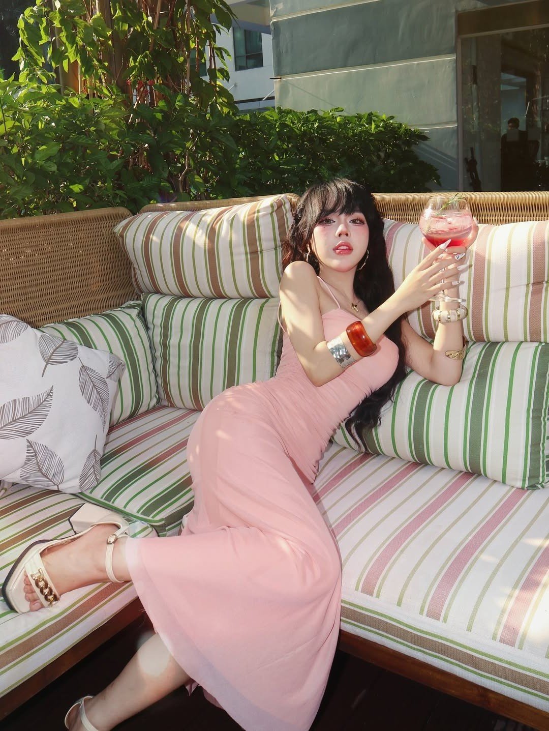 Hot girl Bao Khuyen Susan continues to make a strong impression with her sweet beauty and captivating aura in her latest social media images She showcases her innocent charm and elegant little wife style wearing a seductive yet graceful pink dress Bao Khuyen Susan exudes natural allure as she relaxes on a comfortable sofa with a refreshing cocktail Her gentle yet sophisticated demeanor truly captivates every gaze Fans constantly admire her radiant beauty and refined fashion sense affirming the undeniable appeal of a new beauty icon This look perfectly blends cuteness with subtle sensuality making her a trending topic online