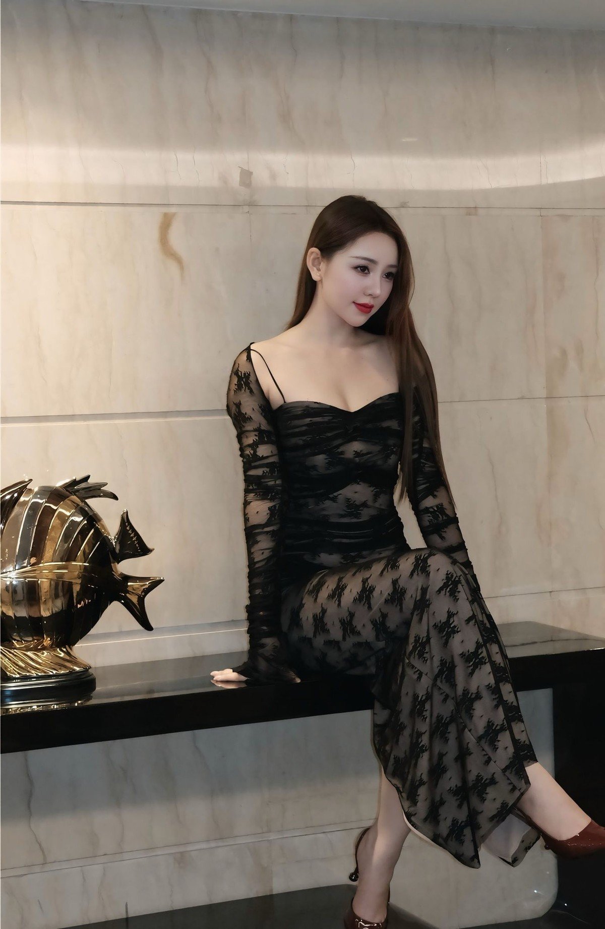 Discover the captivating beauty of Yang Chen Chen in the exclusive XiaoYu No.241 photo collection. This Chinese model radiates confidence and allure in a form-fitting black dress. Its elegant high-slit design and premium fabric highlight her sensual curves and long slender legs. The luxurious interior setting, featuring a classic sofa and an opulent chandelier, further enhances Yang Chen Chen's sophisticated and classy appearance. Each moment captures her magnetic charisma and irresistible charm, offering a stunning visual experience for viewers.