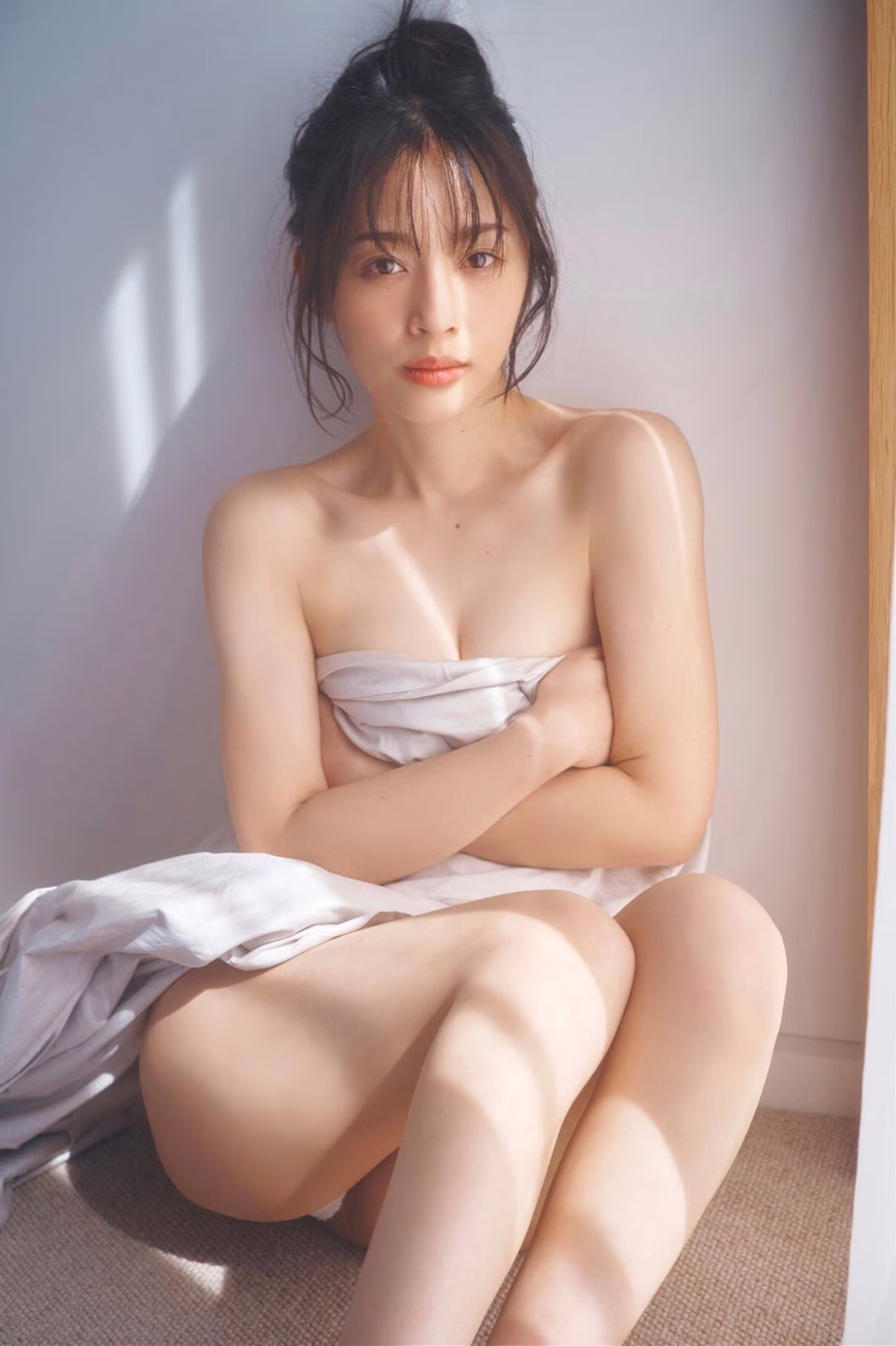 Experience the pure and enchanting allure of Misaki Jinbu (神部美咲) in this exquisite image from FLASH Digital Photo Book Vol.2. Misaki Jinbu captivates with her natural and compelling presence as she sits gracefully on the floor bathed in soft gentle light. Draped elegantly in a delicate white fabric she exudes a subtle yet profound sensuality. Her refined features and thoughtful gaze convey genuine emotion and an intimate connection. This collection promises to showcase the most beautiful moments of Misaki Jinbu a Japanese girl whose charm is both gentle and irresistibly captivating. Explore the full spectrum of Misaki Jinbu's beauty in this exclusive digital photo book.
