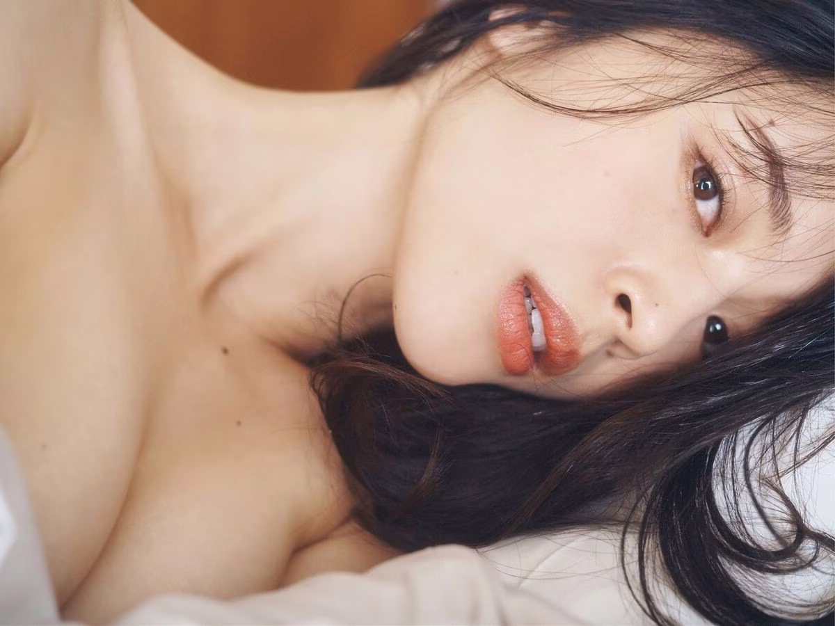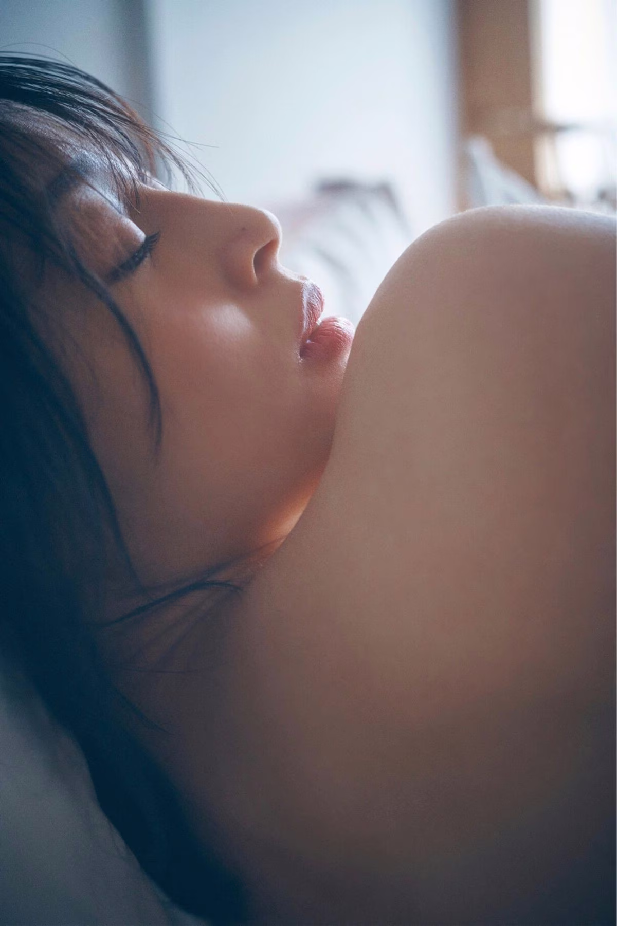 This exquisite image captures JP Miru in a tender and captivating pose. Her gentle smile and direct gaze create an intimate connection with the viewer. Bathed in soft, natural light, her smooth skin and expressive eyes highlight an irresistible allure. Miru is depicted in a relaxed setting, possibly a cozy bedroom, enveloped by a plush white blanket or pillow, suggesting warmth and comfort. This portrait, part of the 'Scenery Part01' collection, beautifully showcases Miru's natural elegance and charm, inviting admiration for her serene beauty. It evokes a feeling of peaceful intimacy and subtle sensuality, making it a truly memorable visual experience for fans and admirers alike.