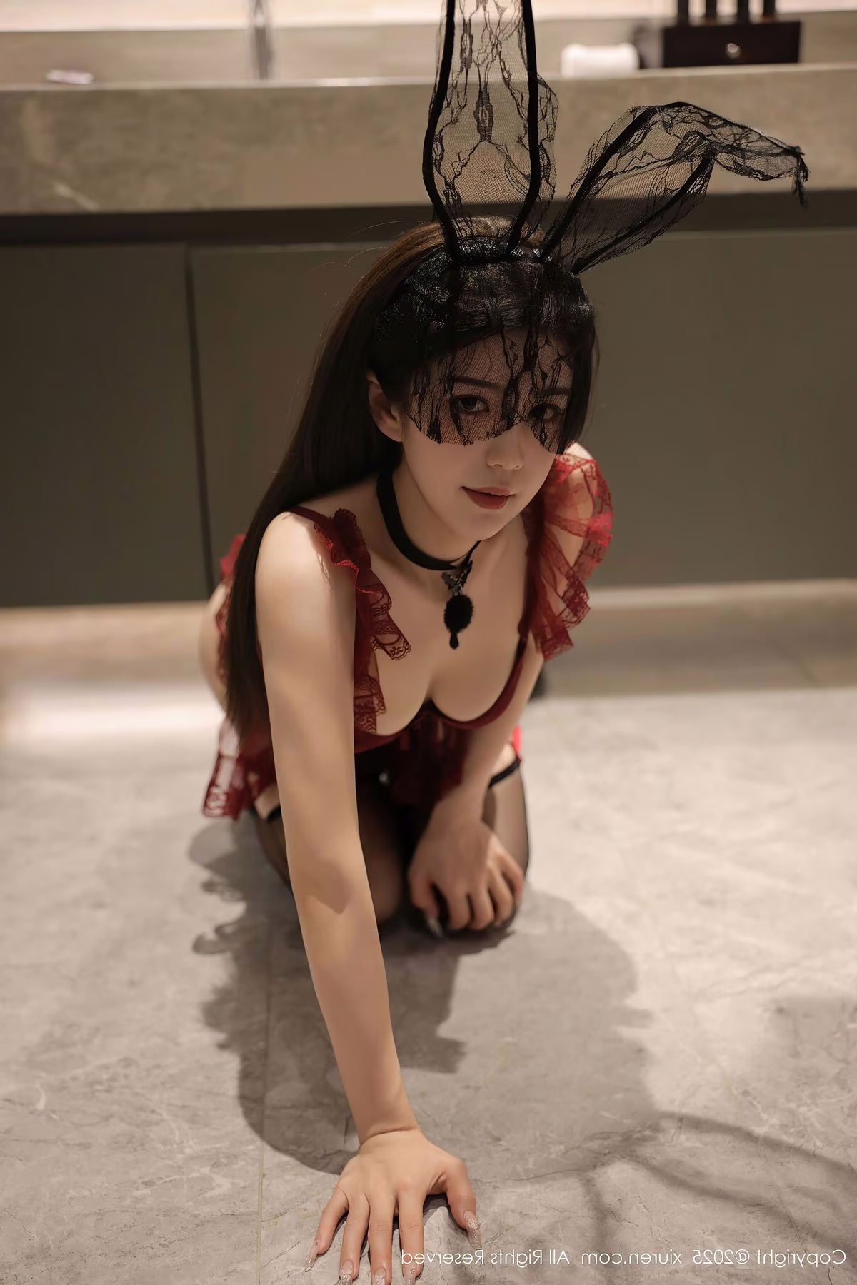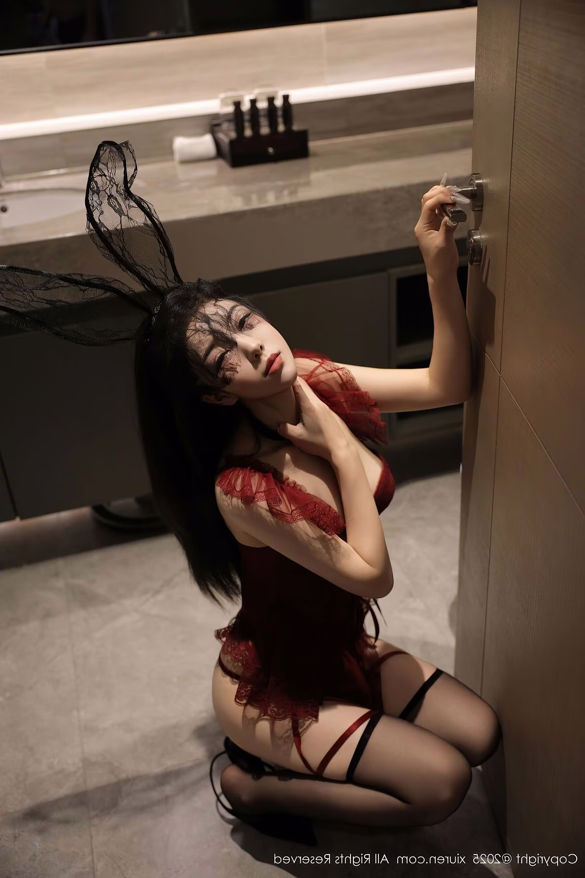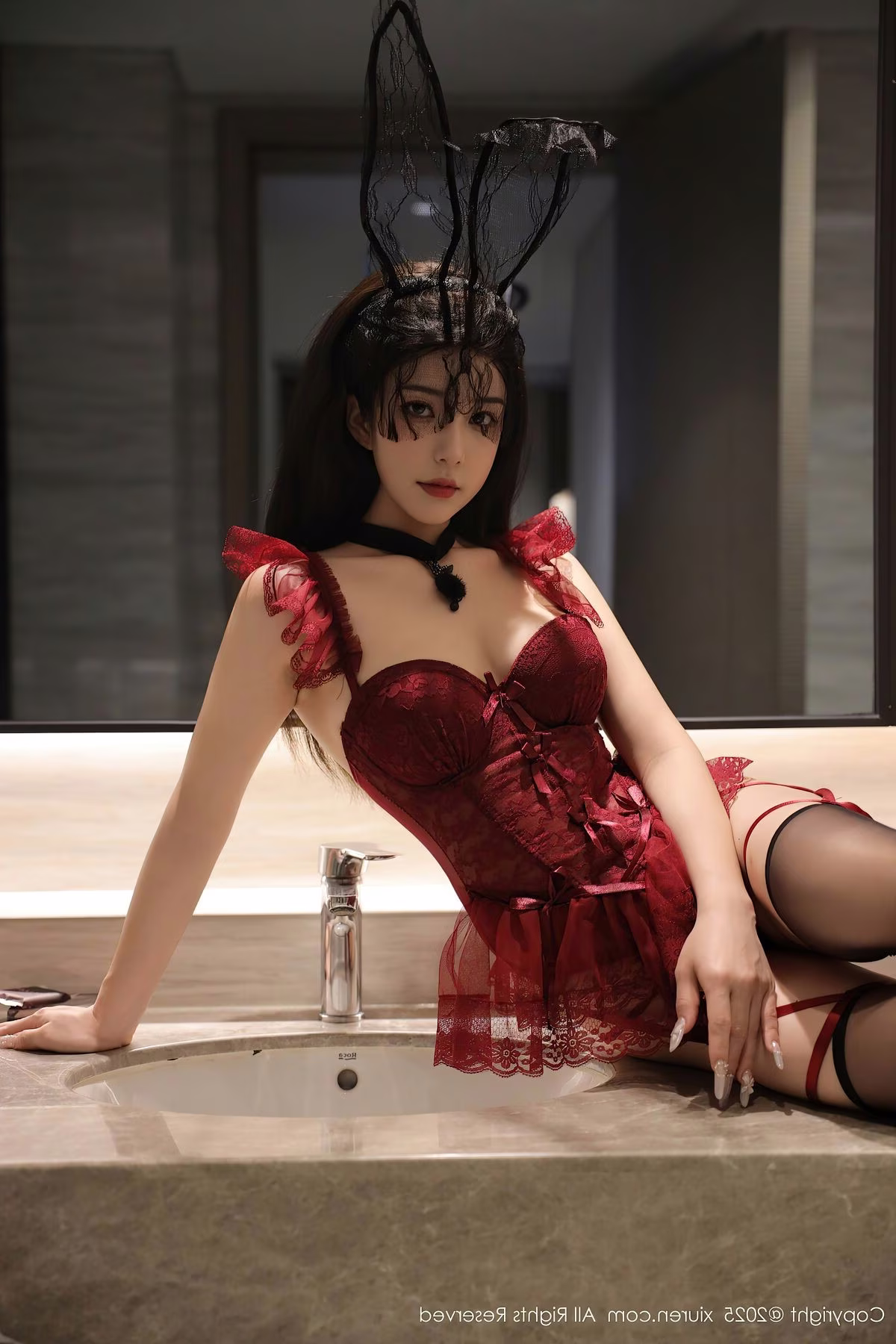 Li An Ni, a promising newcomer from XiuRen No10386, makes a striking debut with her first captivating photoshoot. In this image she exudes an irresistible allure. Her exquisite red lace lingerie elegantly accentuates her delicate curves, while the playful black bunny ears add a unique blend of innocence and seduction. Her dreamy gaze and gentle pose leaning against the bathroom counter create an intimate and engaging atmosphere. Every detail from the intricate lace fabric to the distinctive accessories highlights Li An Ni's captivating aura and unique style. This spectacular introduction promises much more from this talented model, delivering a mesmerizing and unforgettable visual experience.