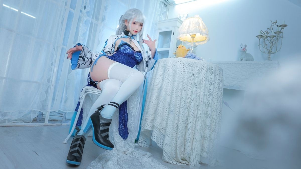 Coser embodies Azur Lane's Belfast in a stunning blue outfit - Exquisite Cosplay