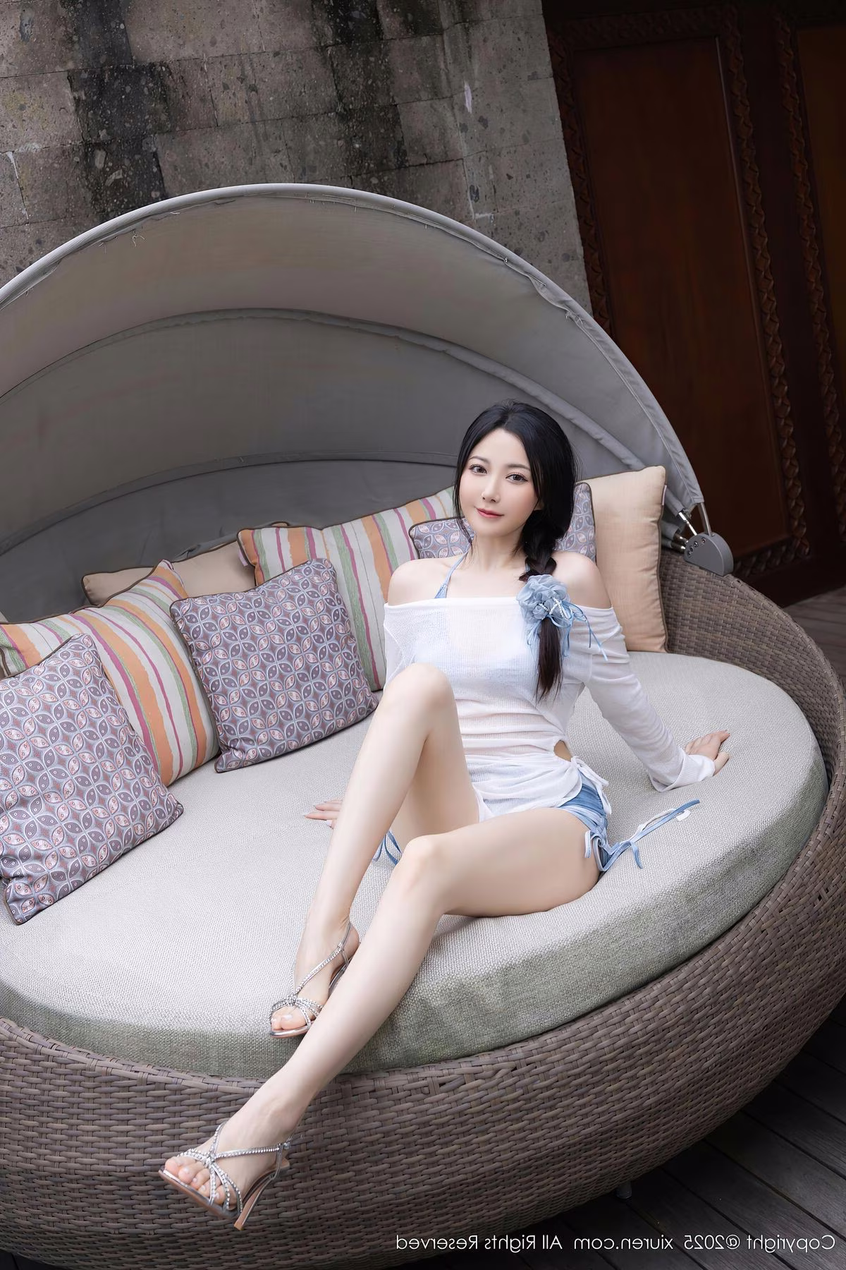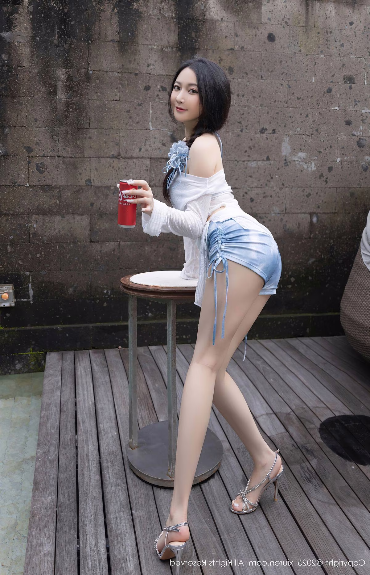 In the XiuRen No.10377 photo collection, model Yu Zi Jiang Fish radiates a graceful and vibrant beauty by the pool. She sits relaxed on a small stool, her charming braided hair complementing her stylish white top and dynamic denim shorts. Her gentle gaze looks into the distance, seemingly enjoying the peaceful summer moment to the fullest. The pool setting, with its clear blue water and natural stone wall, creates an ideal backdrop, highlighting Yu Zi Jiang Fish's fresh beauty and individual style. This collection will undoubtedly offer viewers a sense of relaxation and impressive visual enjoyment.Stories