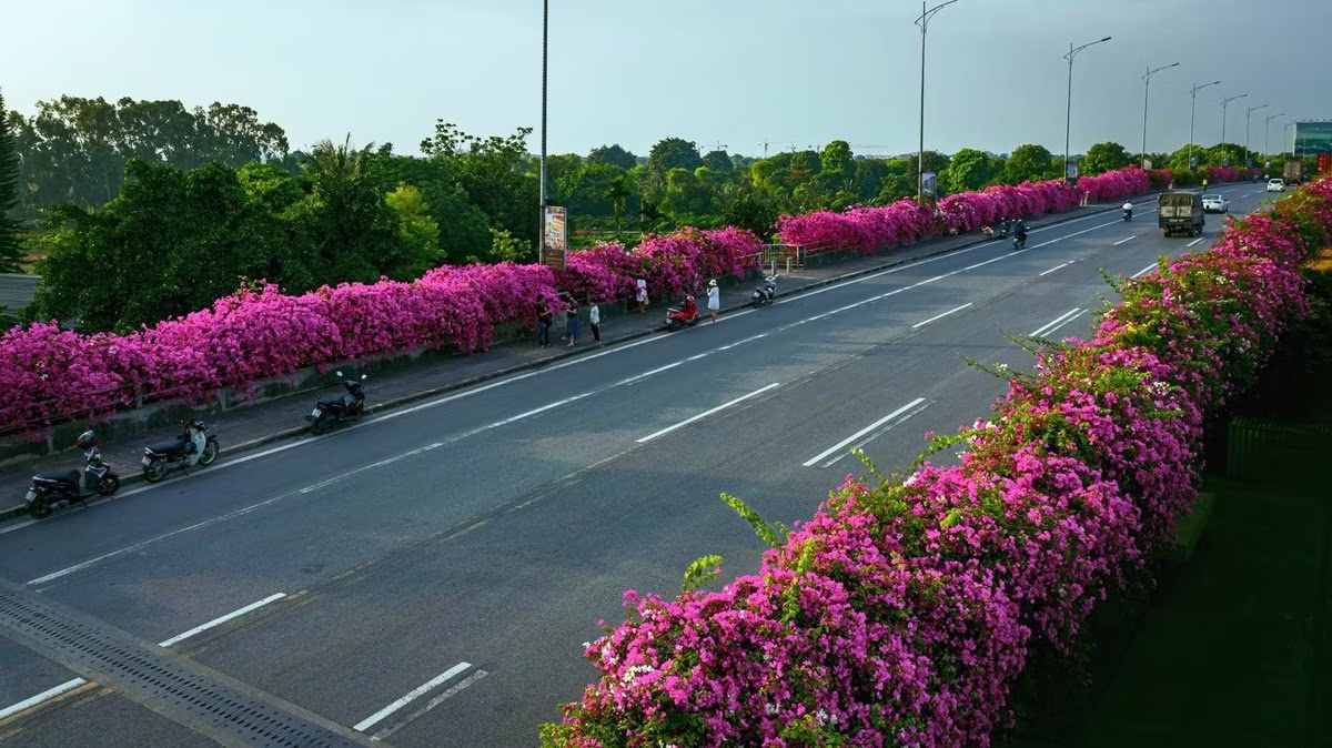 Vibrant Pink Bougainvillea Bridge: Ecopark Hung Yen's Hottest New Check-in Spot Captivating Youth