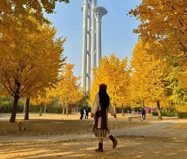 Beijing's golden autumn offers an irresistible romantic scenery, especially the dazzling beauty of ginkgo leaves. This photo captures a young woman joyfully immersing herself in the fresh, crisp autumn air. With a radiant smile, she gracefully poses by a golden ginkgo tree, playfully holding a small leaf over her eye, as if to perfectly preserve this beautiful autumn memory. It's an ideal outdoor activity for photography, connecting with nature, and finding peace. Beijing in autumn is always an attractive destination for those seeking a blend of ancient and modern beauty, and wishing to enjoy truly memorable moments.#BeijingAutumn #GinkgoLeaves #TravelBeijing #AutumnPhotography #AutumnBeauty