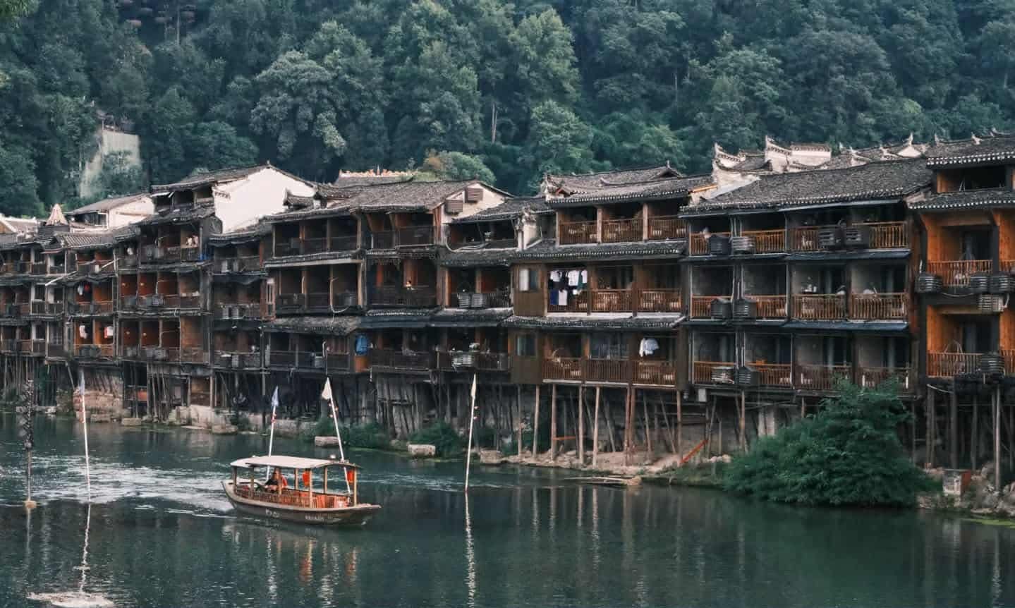 Discover Fenghuang Ancient Town: Serene boat ride, historic riverside charm.
