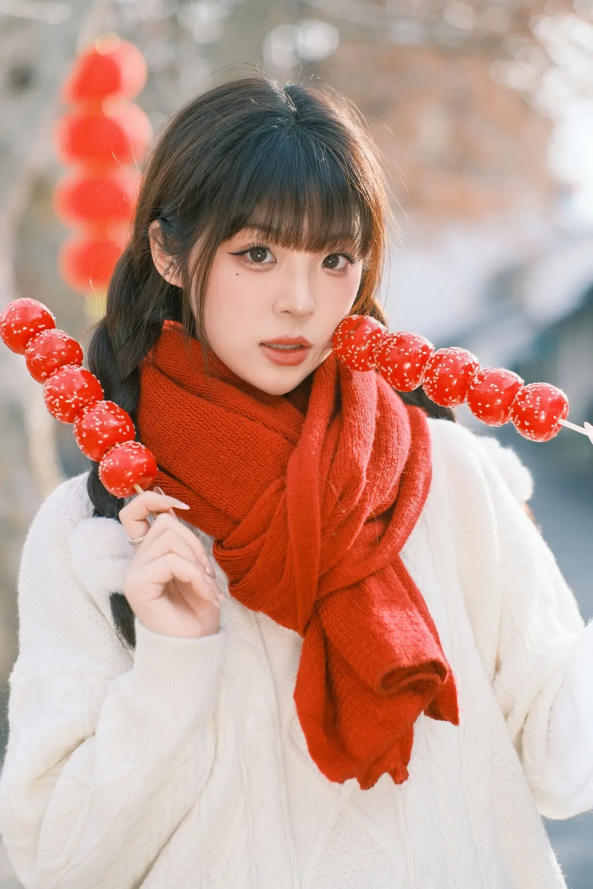 In the latest YiTuYu Vol.8562 collection model Sai Xi Xi Li Ma captivates with her gentle and graceful beauty She is beautifully adorned in a warm white knitted sweater perfectly complemented by a vibrant red scarf symbolizing good fortune and the festive spirit Her bright smile and charming braided hair accentuate her youthful and lively presence The outdoor setting subtly hinting at winter with a traditional red lantern in the background further enhances the approaching Lunar New Year atmosphere This collection not only captures a beautiful moment but also conveys a sense of warmth and joy for the festive season#SaiXiXiLiMa #YiTuYu #FestiveFashion #AsianModel #WinterStyle