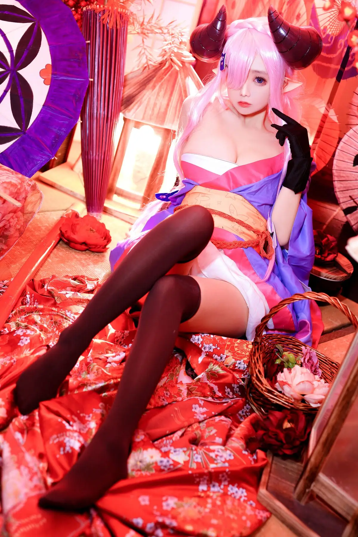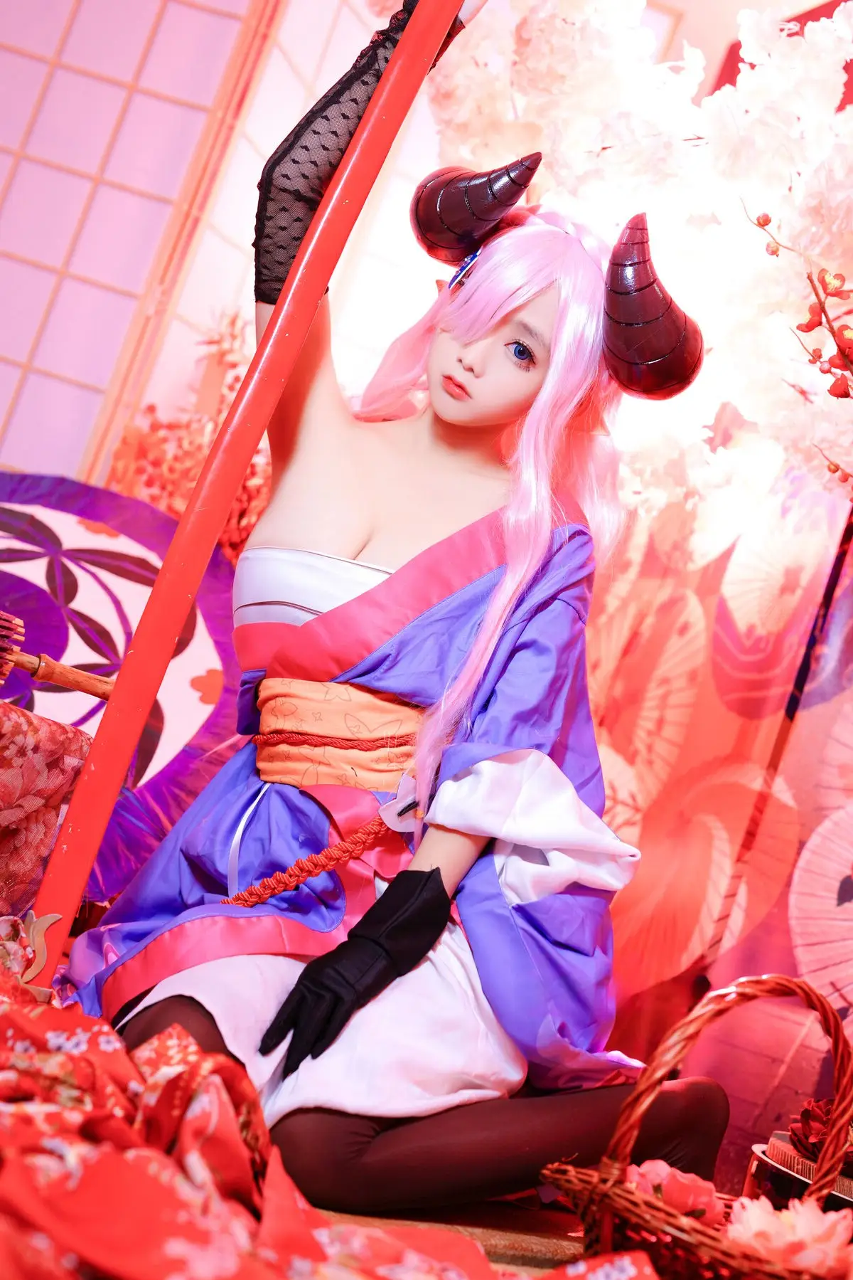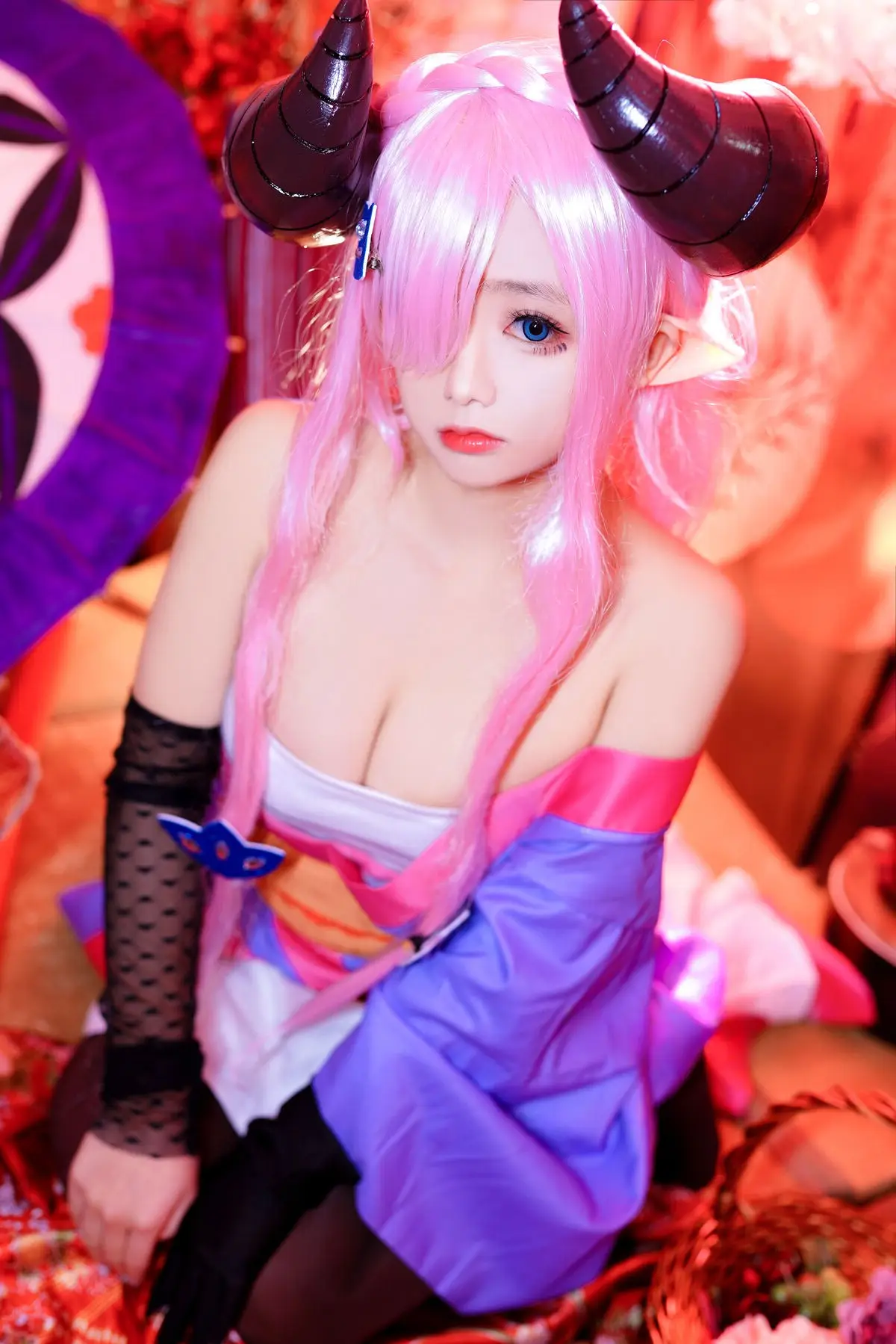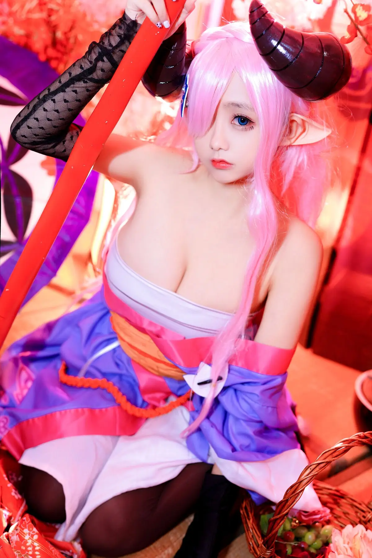 This image perfectly captures the stunning transformation of coser Hina Jiao into the beloved character Narmaya from the game Granblue Fantasy. With her signature pink hair and impressive horns Hina Jiao masterfully embodies Narmaya's alluring and powerful presence. Her captivating gaze and the meticulously crafted traditional attire showcase a blend of elegance and mystique. The professional posing and attention to detail bring Narmaya to life making it impossible for viewers to look away. This cosplay is a true testament to Hina Jiao's dedication and talent in accurately portraying the popular character. Fans of Granblue Fantasy and cosplay enthusiasts alike will undoubtedly be impressed by this vibrant and authentic portrayal.#NarmayaCosplay #GranblueFantasy #HinaJiao #Cosplay #FantasyCharacter #Coser