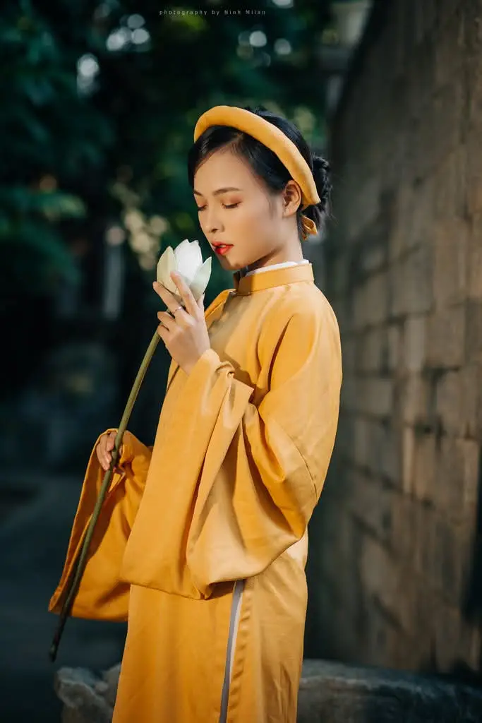 #VietnameseWoman #YellowAoDai #LotusFlower #TraditionalBeauty #VietnameseCulture