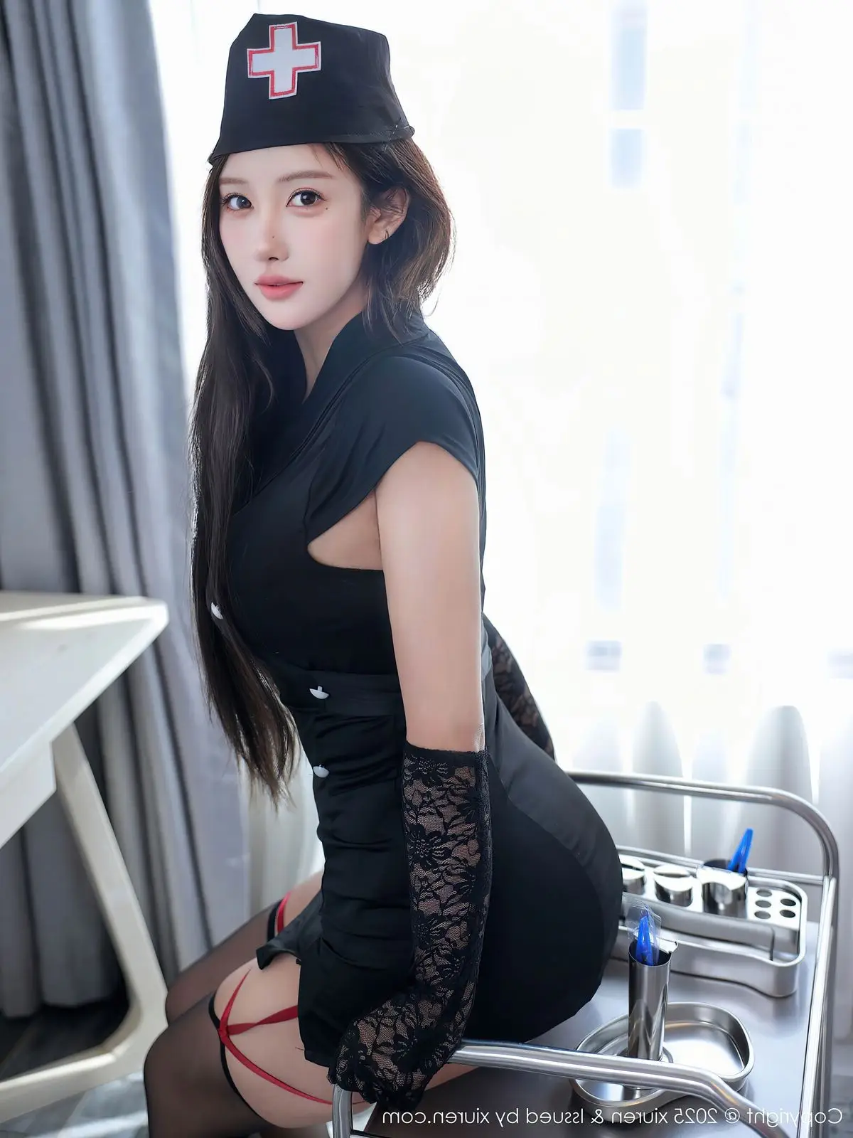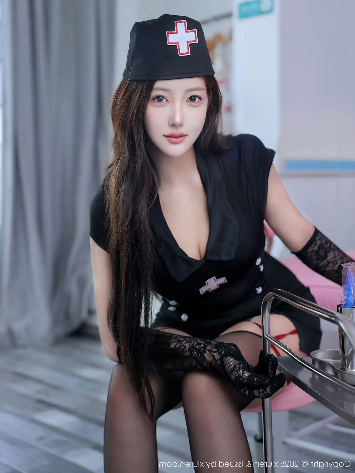 The XiuRen No.10519 photo collection features Jin Yun Xi Yuki embodying a captivating nurse. She dons a sleek black nurse uniform, accented by a matching cap and the iconic red cross emblem. Jin Yun Xi Yuki's sweet charm and mesmerizing gaze are evident in every frame. She poses gracefully on a table, her slender legs highlighted by black stockings and striking red garters. The delicate black lace gloves further enhance her mysterious and sensual appeal. The entire setting is meticulously arranged, creating a backdrop that is both professional and full of personality. Jin Yun Xi Yuki not only cosplays but also breathes life into the character, presenting a version of the nurse that is both approachable and irresistibly alluring, making it impossible for viewers to look away from her captivating charm.#JinYunXiYuki #XiuRenNo10519 #NurseCosplay #SexyPhotoshoot #AsianBeauty