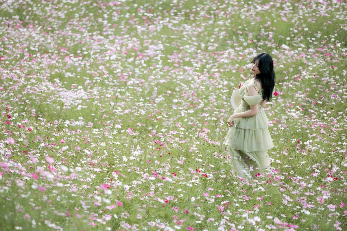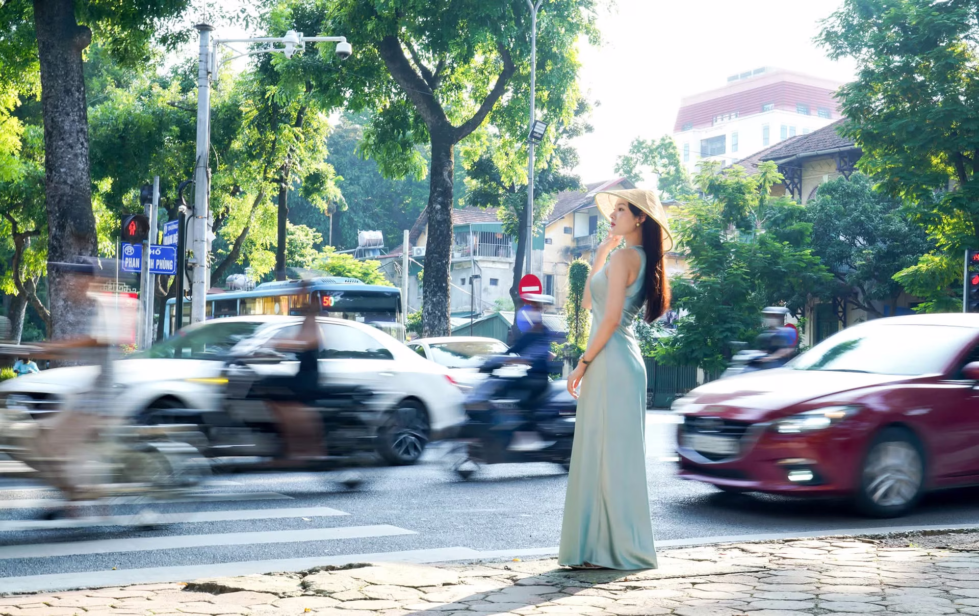 Moc Chau in autumn always attracts visitors with its romantic and peaceful beauty. The image of a girl gently strolling amidst the vast pink grass hills invites you to admire the scenery. This is an ideal moment to check in and preserve memorable moments. Moc Chau plateau this season offers a stunning natural painting with vibrant pink hues mixed with fresh green. Highland autumn tourism is not just a journey to explore the landscape but also an opportunity for the soul to relax. An ideal short trip to Moc Chau will help you escape the urban hustle and immerse yourself in a serene space. Come and feel the freshness enjoy the unique beauty of Moc Chau's pink grass hills.VGU No.106: Elegant Vietnamese Woman in Red by Hoan Kiem Lake, Hanoi's Traditional Beauty