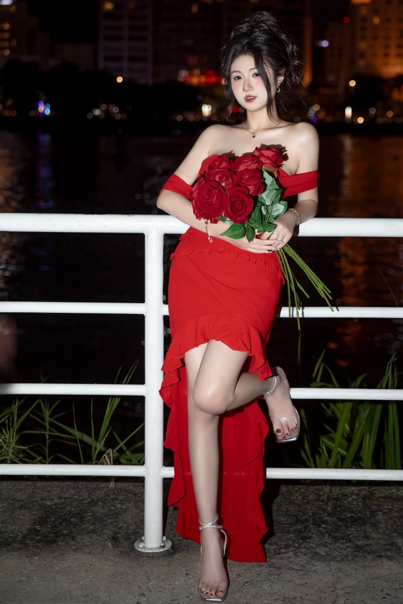 This image captures a captivating moment of a lady in a vibrant red dress, showcasing alluring bare shoulders and long, slender legs. With a sophisticated fashion style, she poses elegantly on city steps at night, with sparkling urban lights as a backdrop. This beautiful portrait exudes confidence and charm. The crisp, high-quality image meets HD wallpaper standards, perfect for those who appreciate fashion beauty and portrait photography. The striking red dress is not just a focal point but also highlights her exquisite taste in attire, making her the center of attention and a symbol of modern allure.Majestic Vietnamese Natural Landscape: Immerse Yourself in Endless Beauty