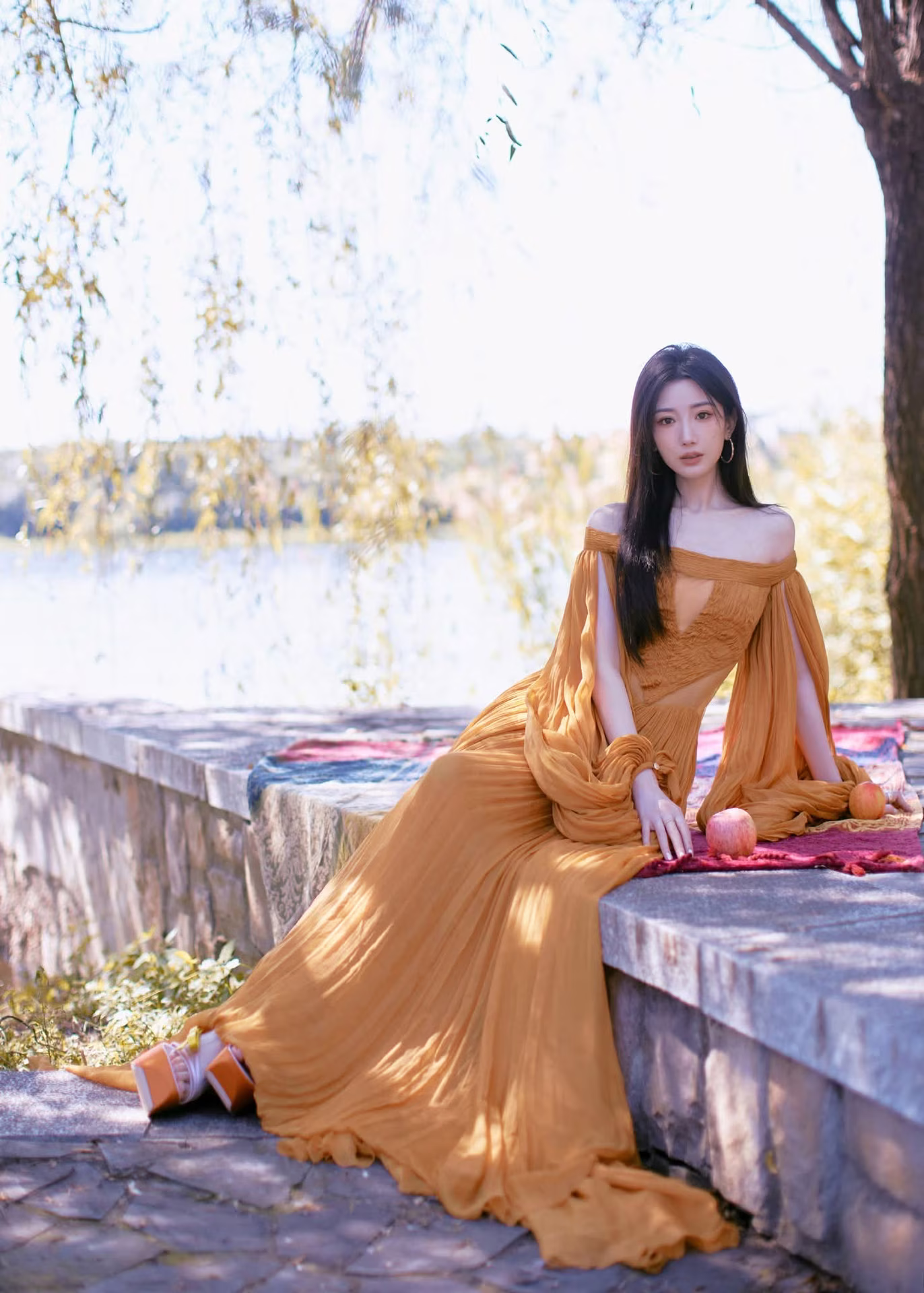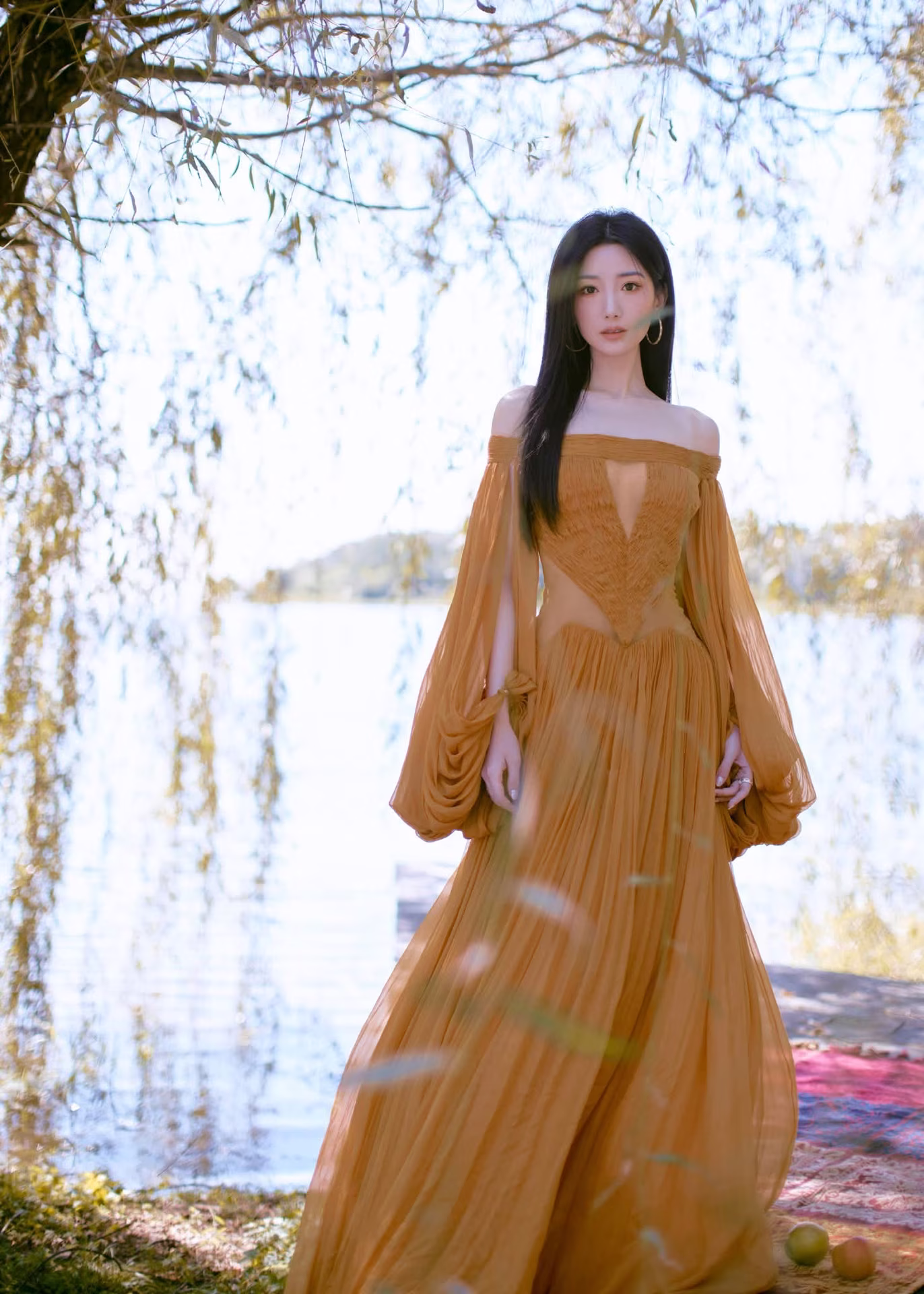The VGU No.135 photograph captures a poetic moment of a young woman in a soft yellow polka-dot dress. She stands gracefully by the lakeside, her bare feet touching the cool refreshing water, conveying a sense of absolute calm and peace. With a radiant smile and sparkling eyes, she seems to be fully embracing the freedom and freshness of her youth. Her playful balancing pose and sandals in hand further highlight her innocence and carefree spirit. This image not only emanates pure beauty but also evokes memories of tranquil summer afternoons, when time seems to slow down to make way for joy and relaxation. It is a memorable moment, showcasing a wonderful harmony between human and nature, bringing a feeling of serenity to the viewer. #Vietnamese #pretty #charmVGU No.134: Enchanting White Dress Muse in Pine Forest: Capturing Natural Beauty and Romantic Golden Hour Moments