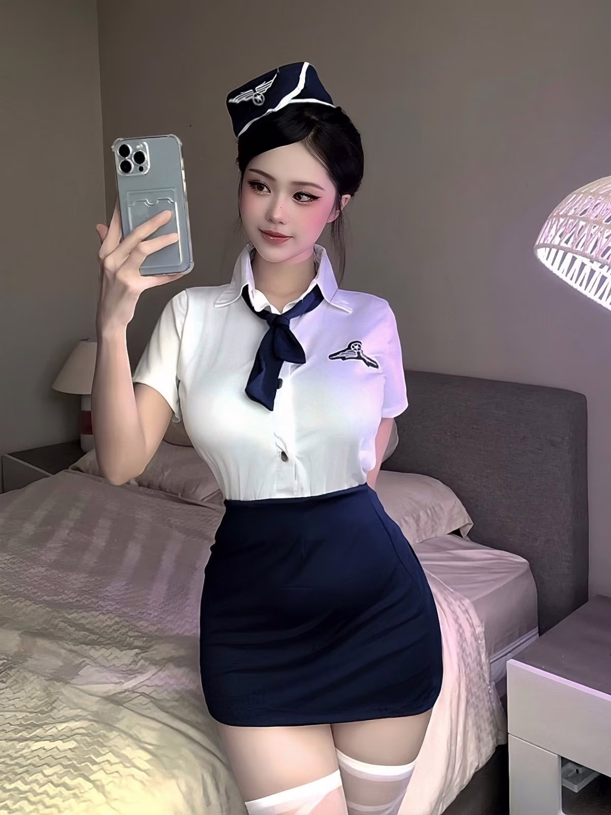 YuGi Kieu Oanh the renowned streamer and cosplayer once again showcased her unique style through a daring flight attendant cosplay photoshoot Adorned in a standard uniform subtly reinterpreted with distinctive white criss-cross stockings she crafted an image that is both professional and irresistibly captivating This transformation not only highlights YuGi Kieu Oanhs creativity and serious dedication to the art of cosplay but also demonstrates her versatile ability to embody various roles The photo quickly went viral drawing widespread attention and praise from the online community affirming her strong appeal as a new generation cosplay icon