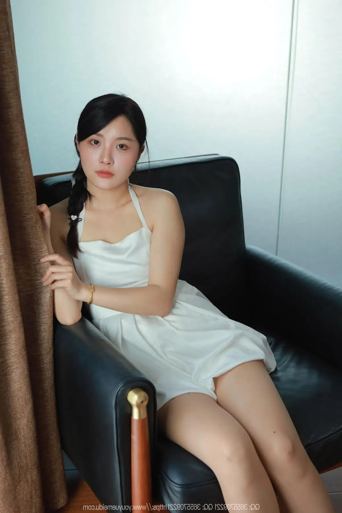 Chinese model Wan Ping, featured in IESS SXJ No.2100 Part 2, exudes an elegant and self-assured beauty. She is gracefully seated on a luxurious leather armchair, dressed in a pristine white shirt paired with a striking red mini skirt, creating a look that is both professional and captivating. Her black high heels accentuate her slender figure, while her mesmerizing gaze conveys professionalism and an undeniable charm. This image beautifully captures not only an impressive fashion moment but also highlights Wan Ping's distinctive charisma, embodying confidence and modern style.