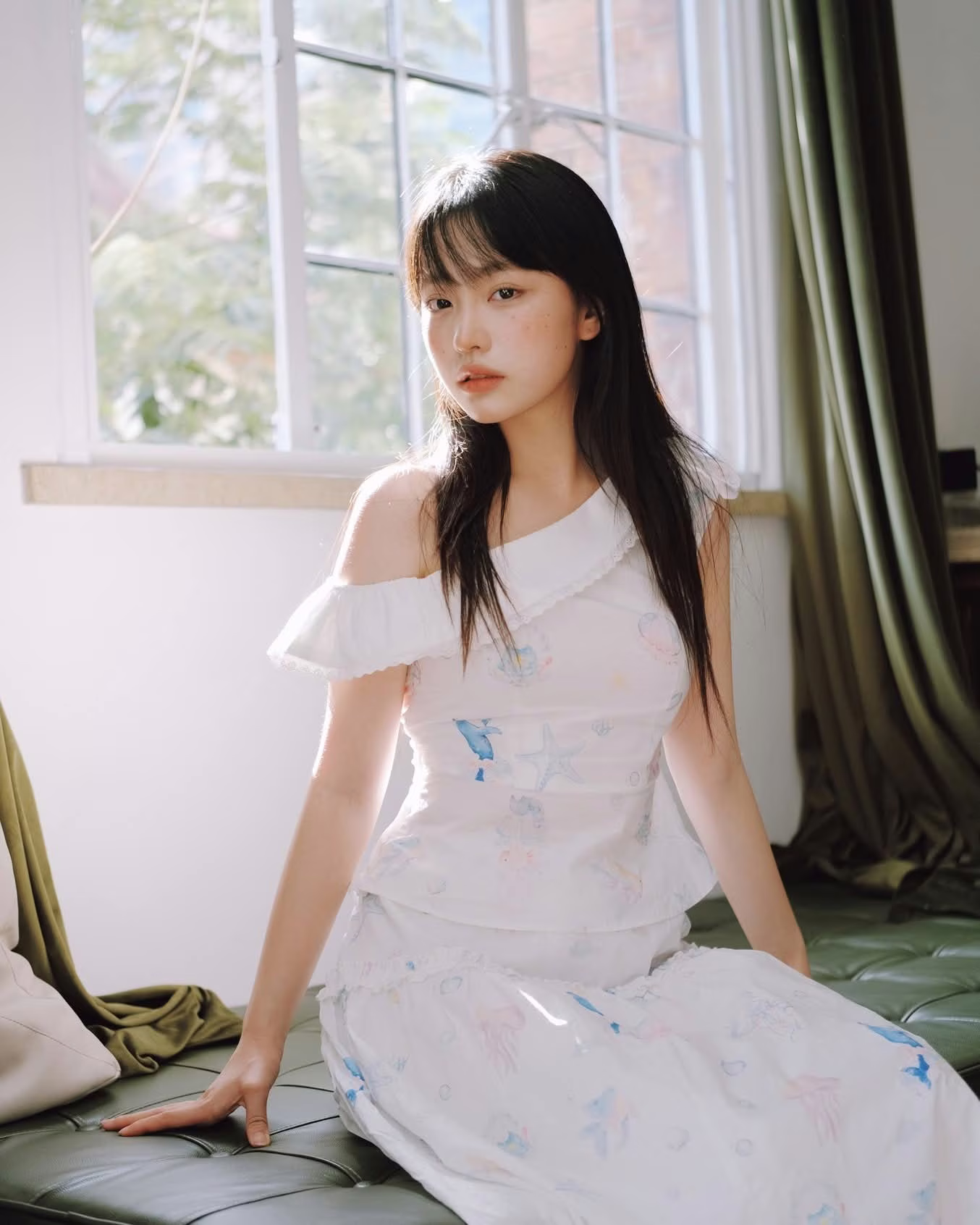 VGU No.92 unveils a poetic scene where the pristine beauty of a young woman merges with refreshing nature. She sits amidst a vibrant carpet of yellow and blue wildflowers, her long flowing hair and pure white dress accentuating her gentle grace. Soft sunlight filters through the lush green foliage, adding a shimmering ethereal quality to this peaceful moment. The small bouquet in her hands feels like an integral part of this dreamy summer tableau, evoking a sense of freedom and absolute tranquility. This image is not just a still moment but an invitation to immerse oneself in the pure beauty of nature and the human spirit. It is a captivating and emotionally rich visual story. #Vietnamese #pretty #charmVGU No.91: Discover the Ethereal Beauty of a Dreamy Muse Amidst Pure Blossoms – An Emotional Portrait