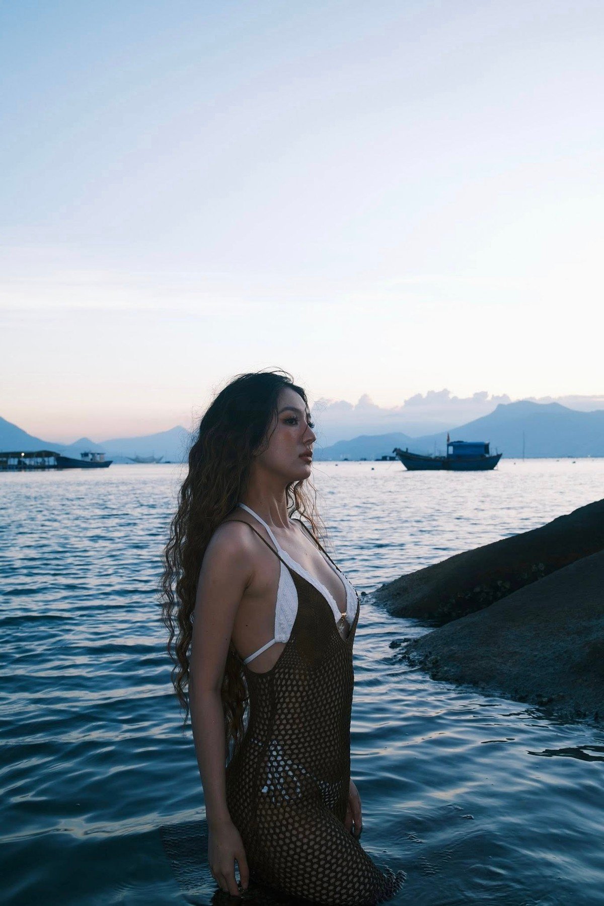 Tue Nhu makes a powerful impression with her incredibly toned post-childbirth figure. Despite being a mother of one she confidently showcases her alluring beauty and flat waist while wearing a seductive outfit amidst the clear blue ocean waters. This moment not only demonstrates Tue Nhu's absolute self-assurance but also serves as a testament to her admirable efforts in maintaining her physique. Her image standing amidst the vast sea with captivating eyes inspires a timeless beauty and the vibrant vitality of a modern woman. Tue Nhu proves that motherhood does not diminish charm but rather celebrates her natural beauty and dynamic lifestyle.