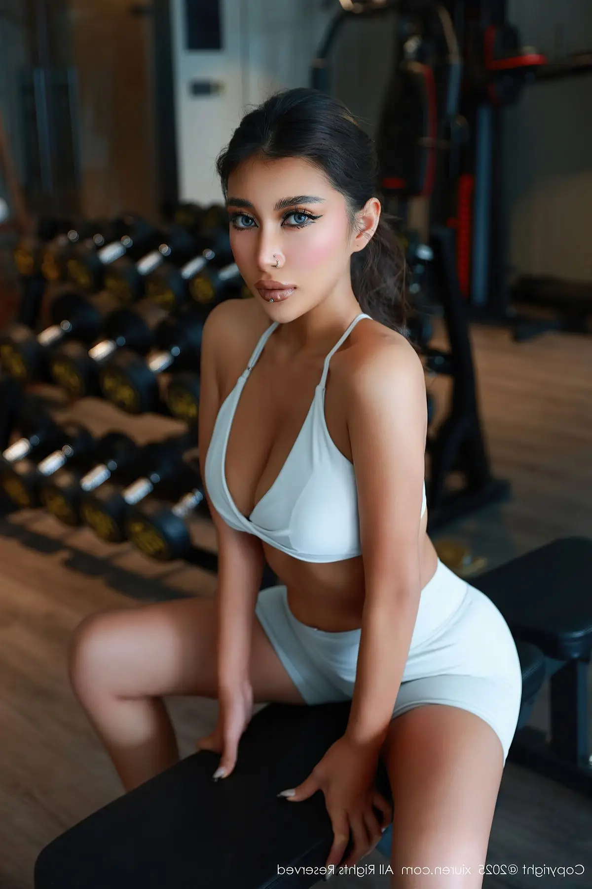 The XiuRen No.1061 collection features model FE, presenting an image brimming with energy and allure. Dressed in pristine white athletic wear, FE confidently showcases her toned and healthy physique within a modern gym setting. The form-fitting sports bra and shorts not only accentuate her perfect curves but also exude a dynamic beauty, ready for an intense workout session. FE's captivating gaze and subtle smile convey a sense of confidence and professional demeanor. This photo series is sure to inspire fitness enthusiasts and those aspiring to maintain a healthy lifestyle, while also highlighting model FE's unique charm in athletic fashion.#FEmodel #XiuRen #gymfashion #athleticwear #fitnessmotivation